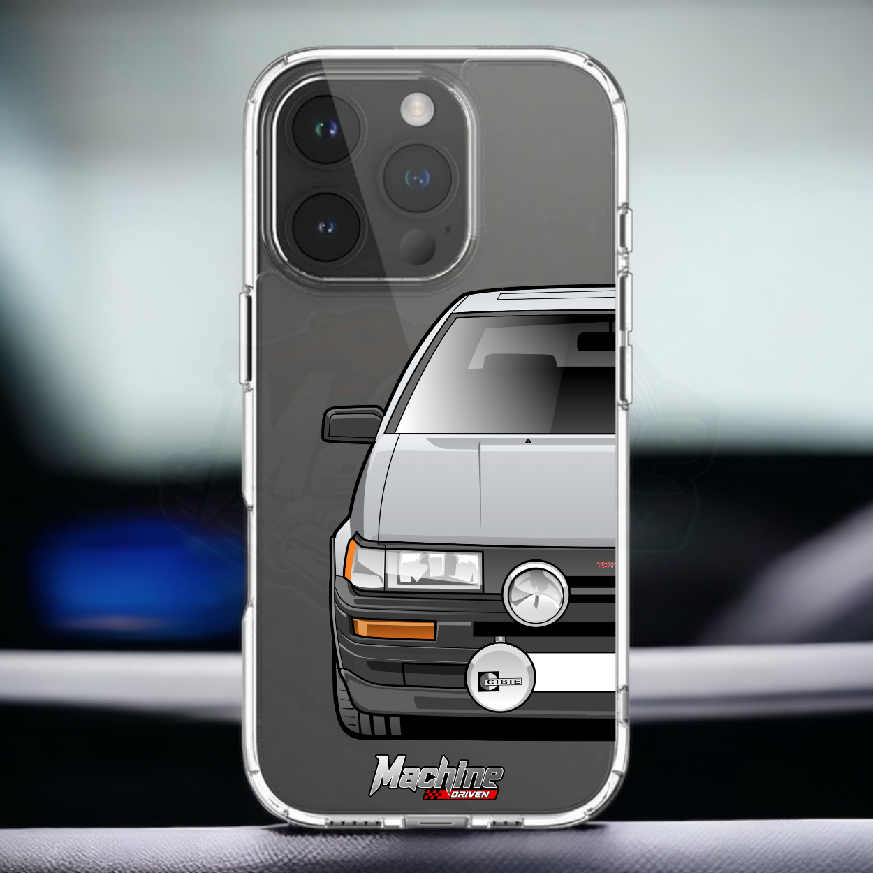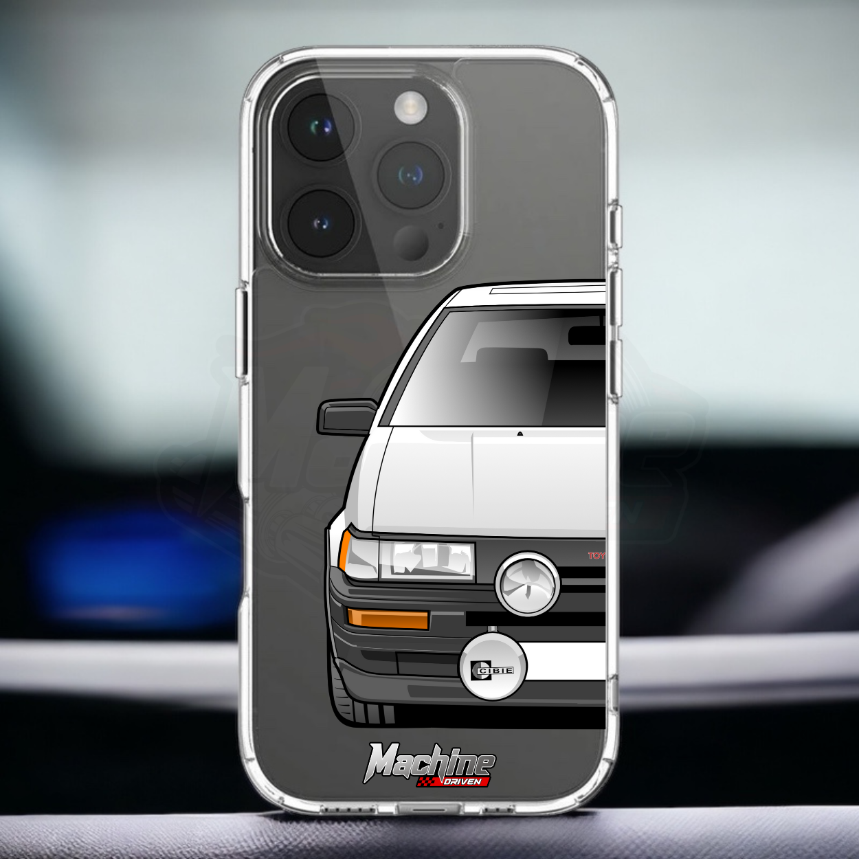 Our phone cases are transparent to show off the original colour of your phone, overlayed with ultra realistic half-image of your car and Machine Driven Logo.