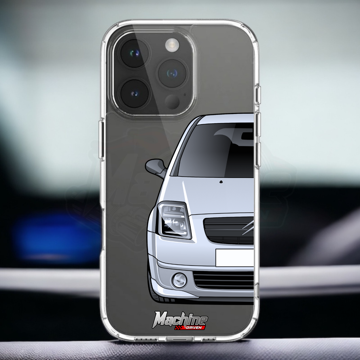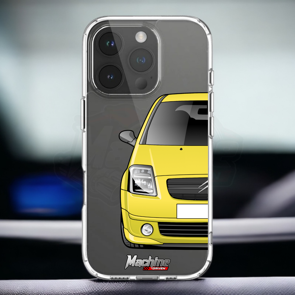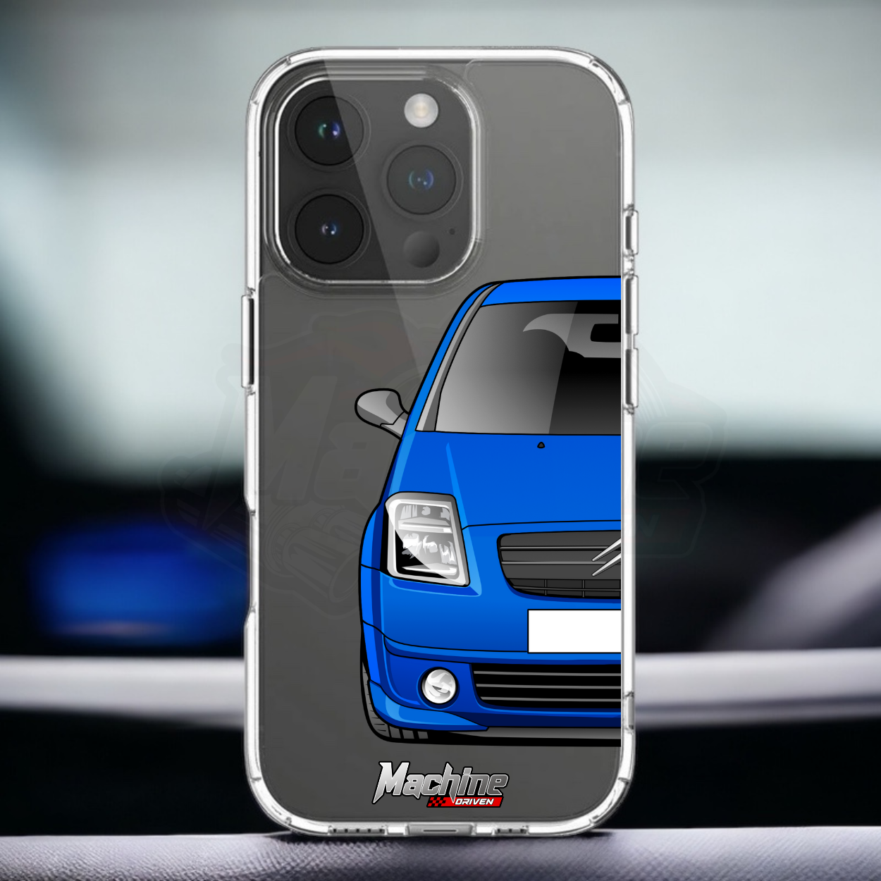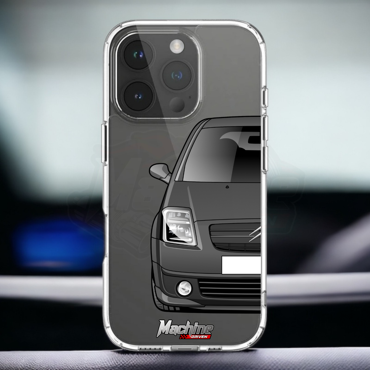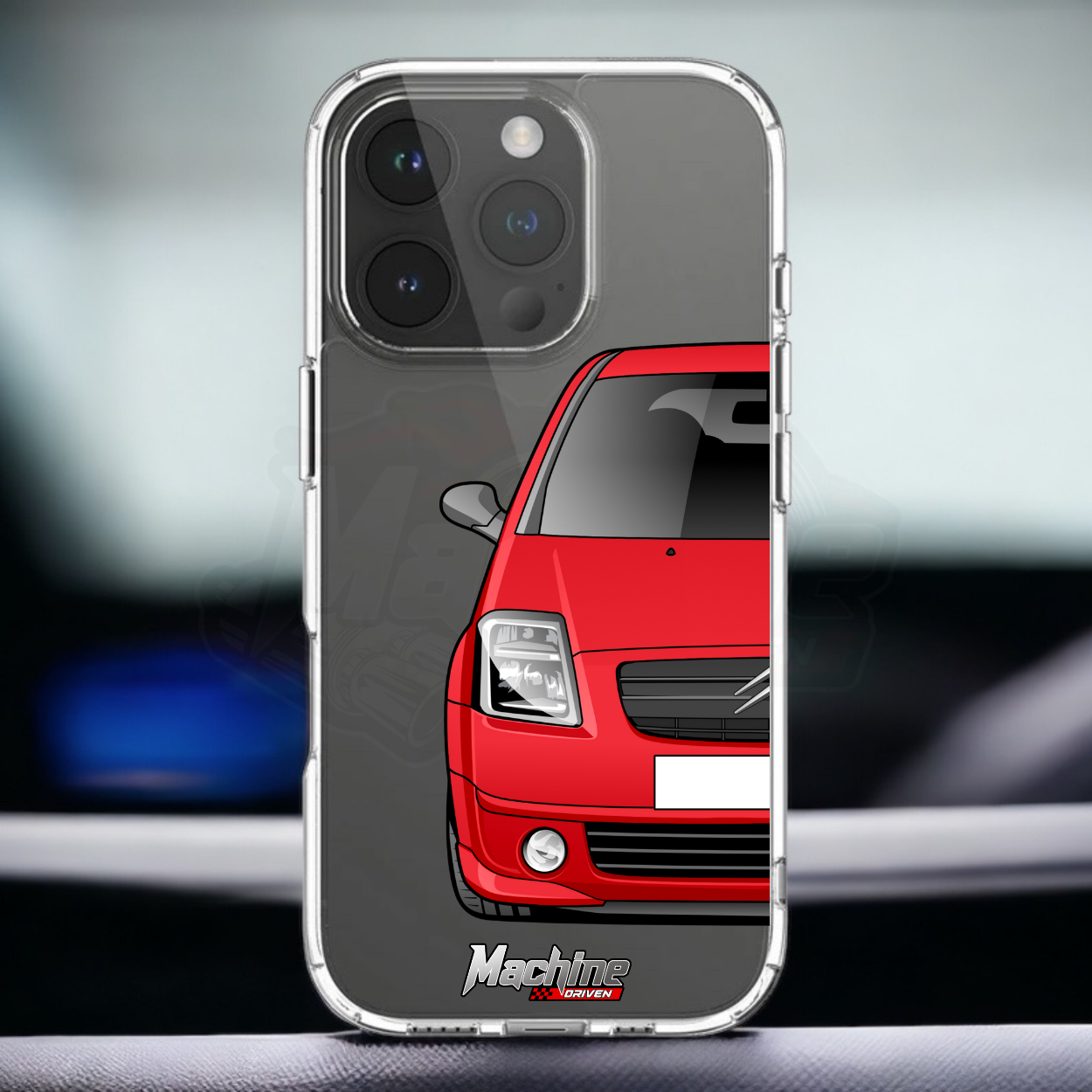 Our phone cases are transparent to show off the original colour of your phone, overlayed with ultra realistic half-image of your car and Machine Driven Logo.