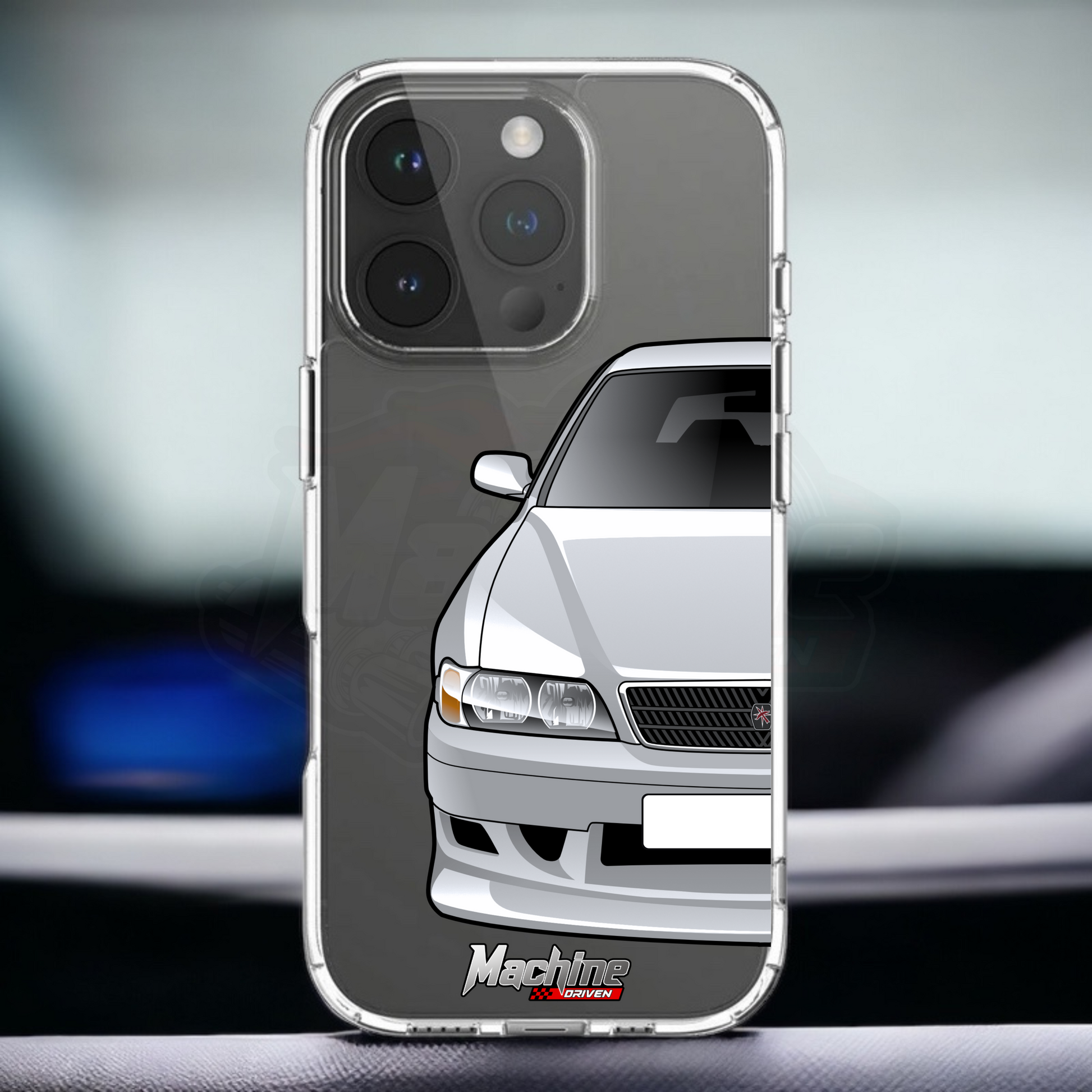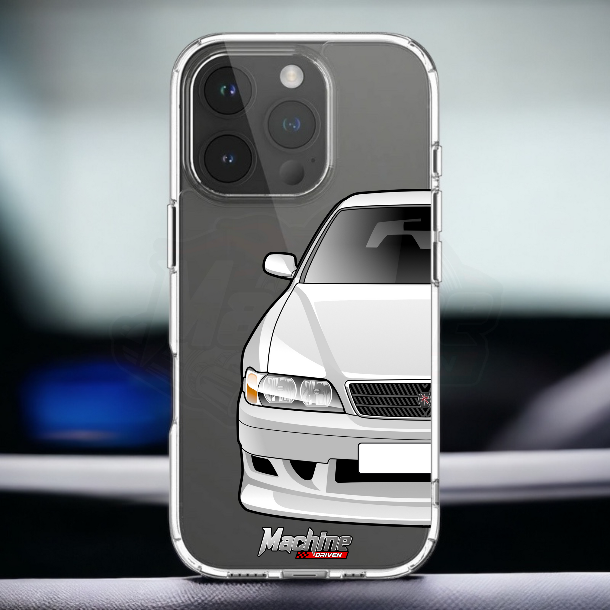 Our phone cases are transparent to show off the original colour of your phone, overlayed with ultra realistic half-image of your car and Machine Driven Logo.