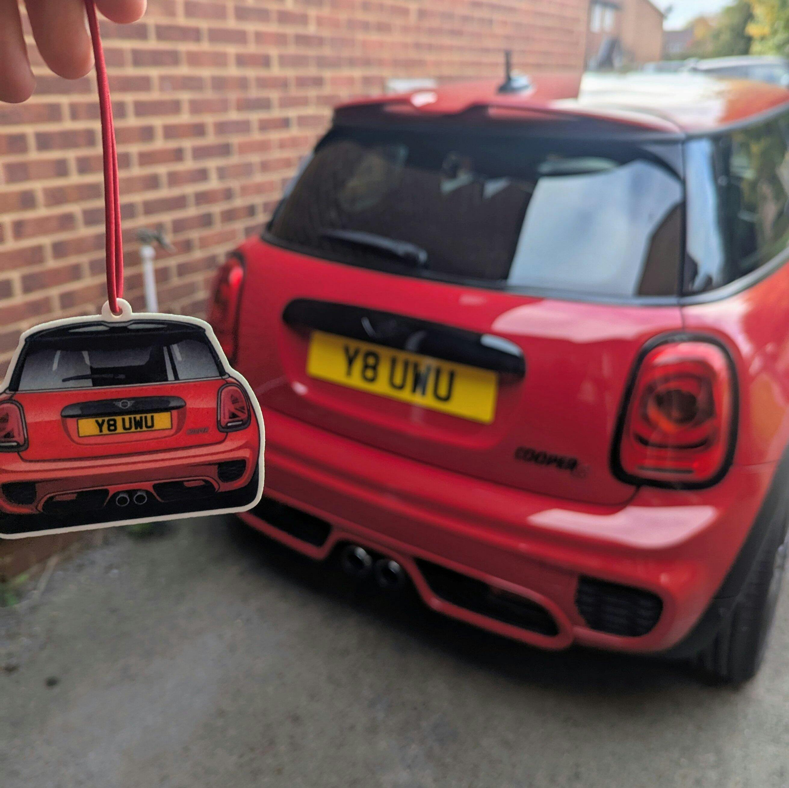 Contents - 1 x custom car air freshener (double-sided, unscented), 1 x 10ml bottle of your chosen premium fragrance.