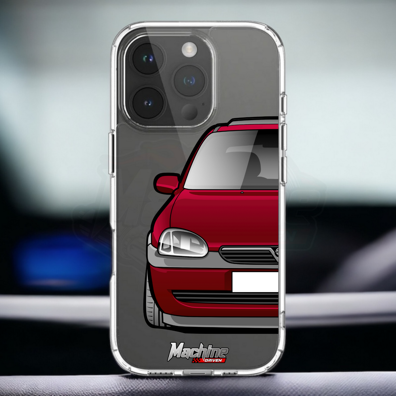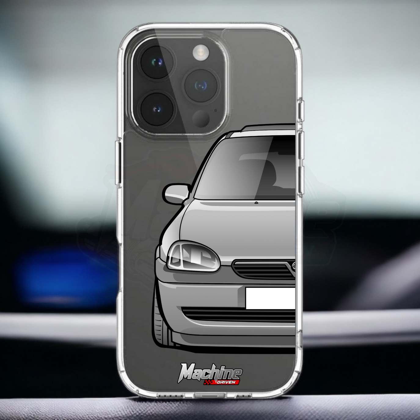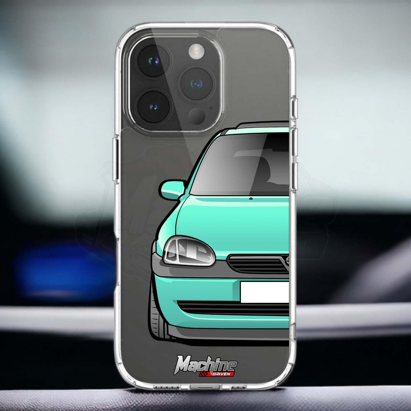 Our phone cases are transparent to show off the original colour of your phone, overlayed with ultra realistic half-image of your car and Machine Driven Logo.