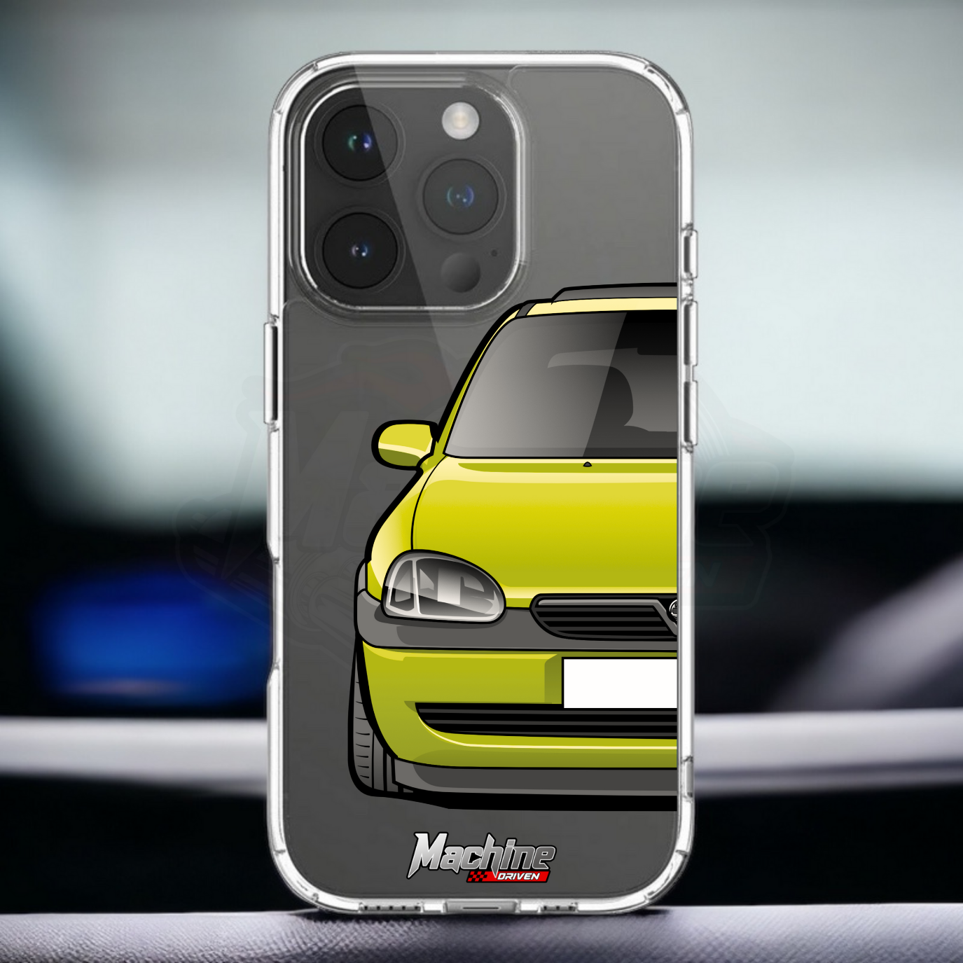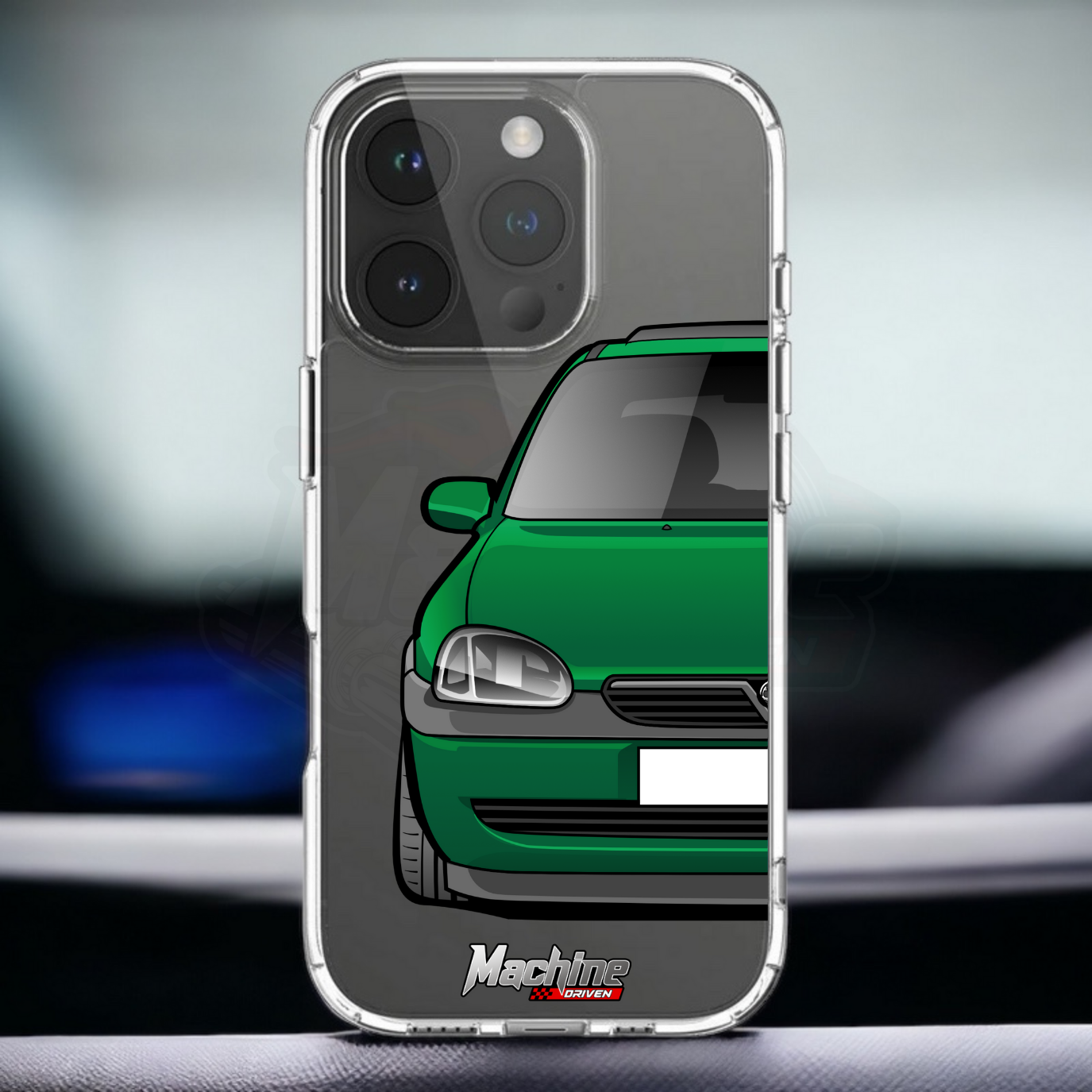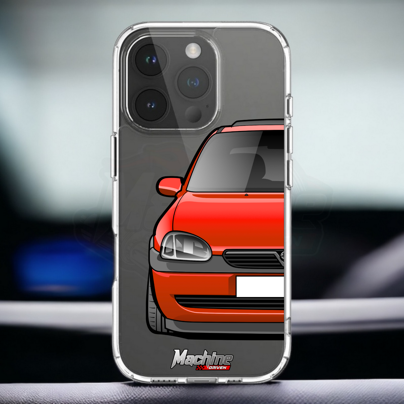 Our phone cases are transparent to show off the original colour of your phone, overlayed with ultra realistic half-image of your car and Machine Driven Logo.