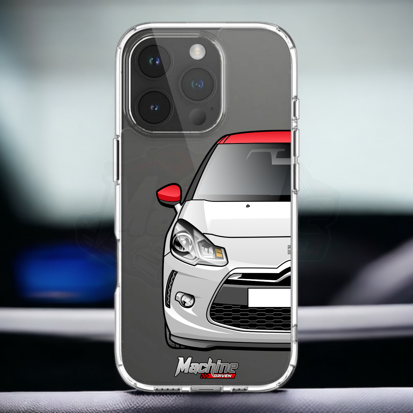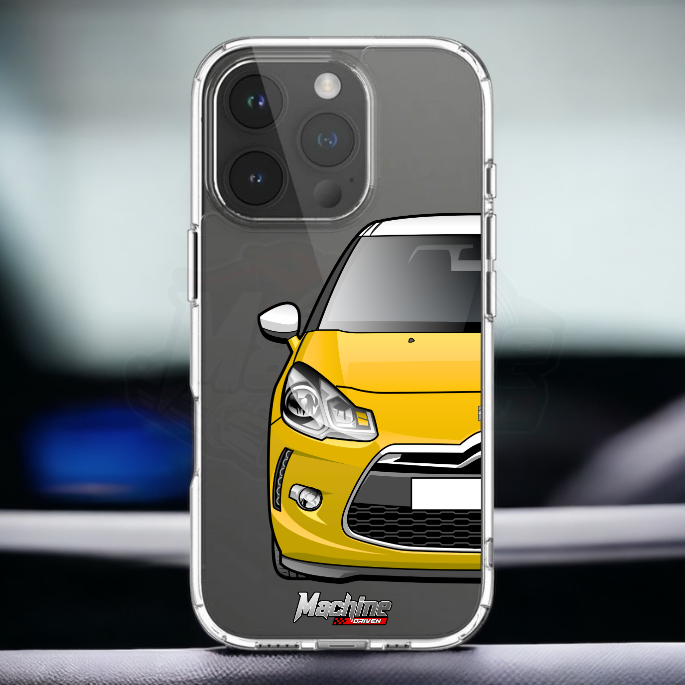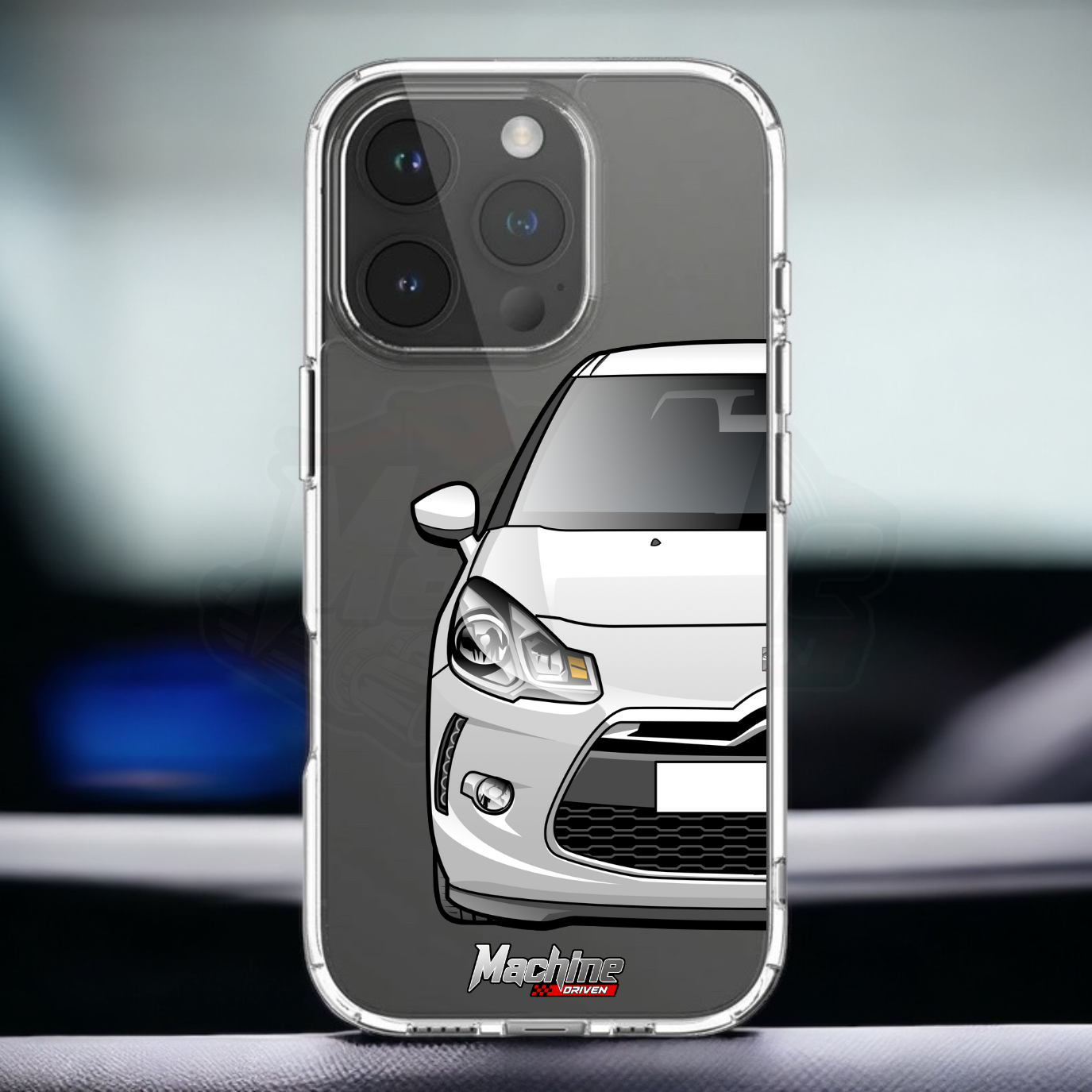 Our phone cases are transparent to show off the original colour of your phone, overlayed with ultra realistic half-image of your car and Machine Driven Logo.