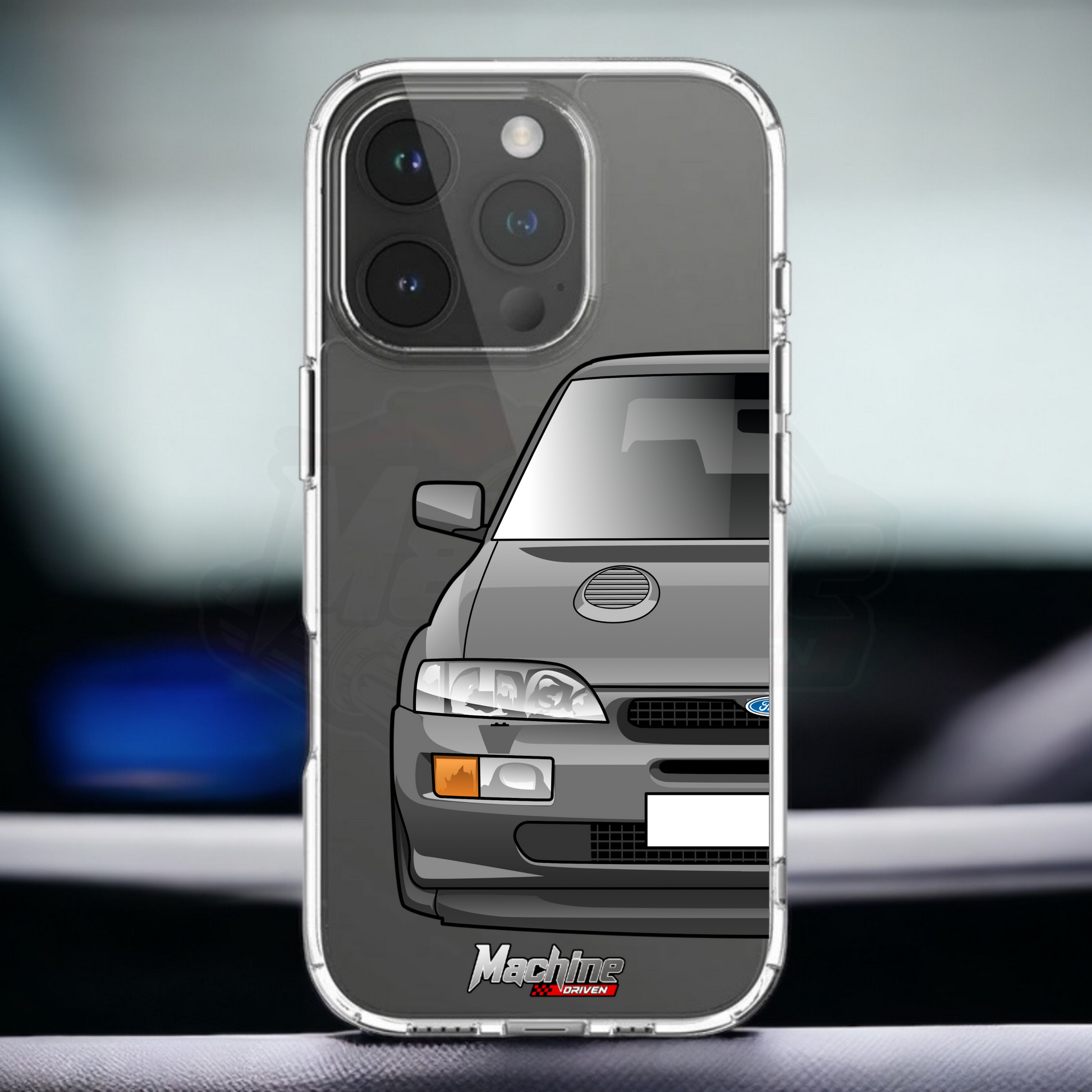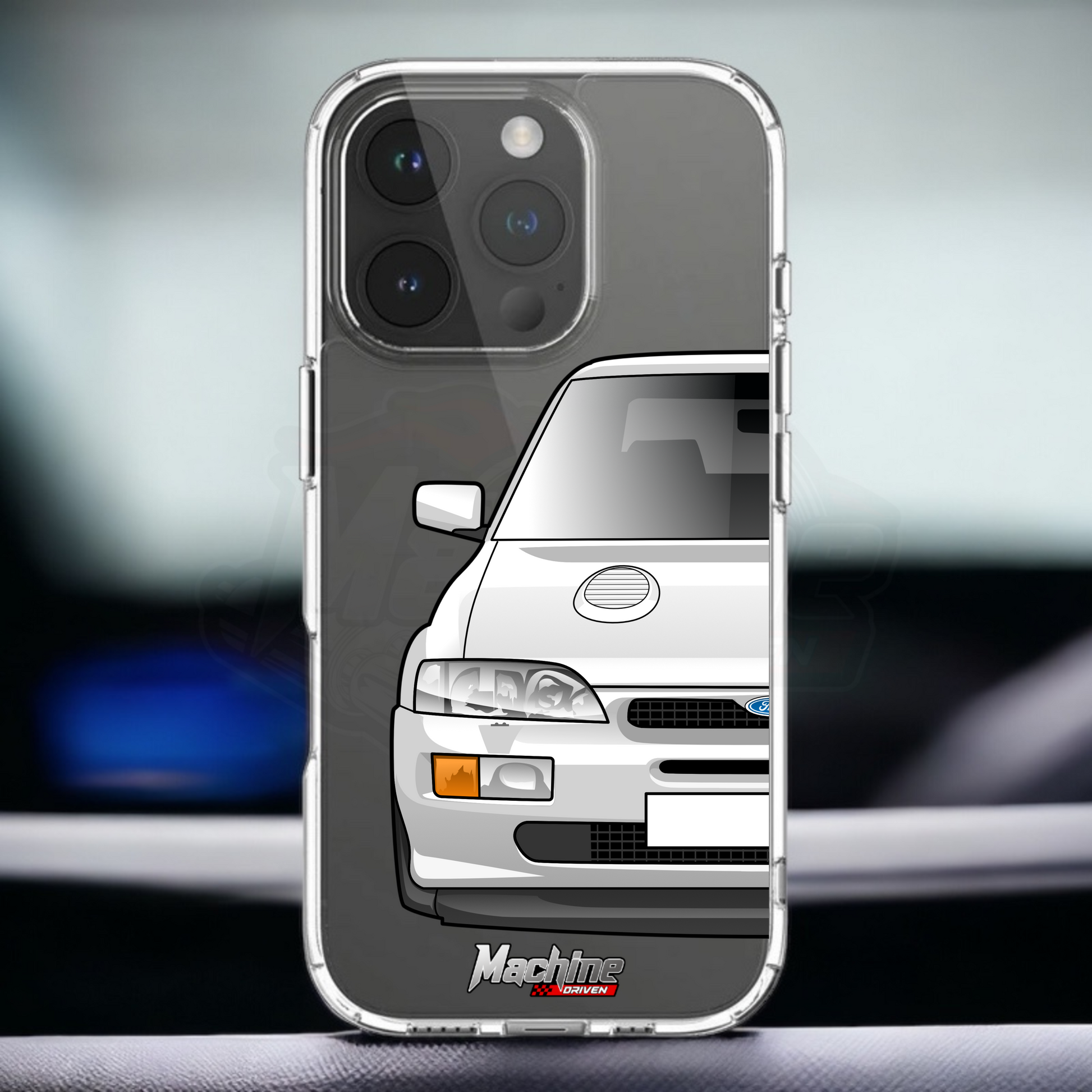Our phone cases are transparent to show off the original colour of your phone, overlayed with ultra realistic half-image of your car and Machine Driven Logo.