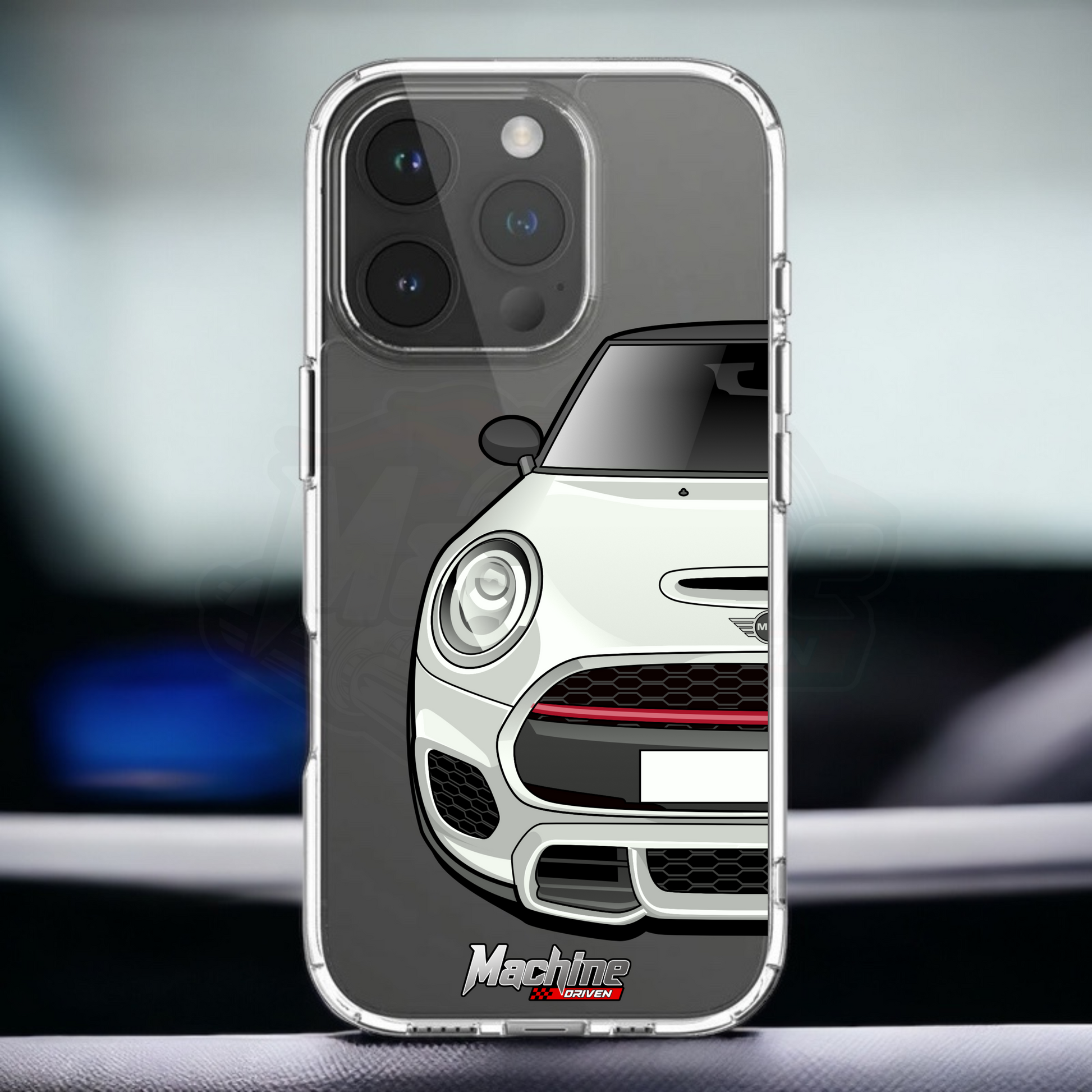 Our phone cases are transparent to show off the original colour of your phone, overlayed with ultra realistic half-image of your car and Machine Driven Logo.