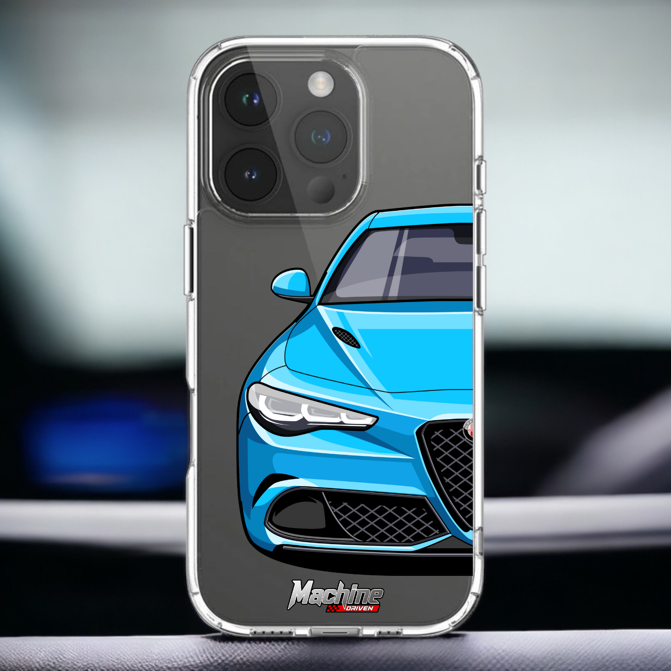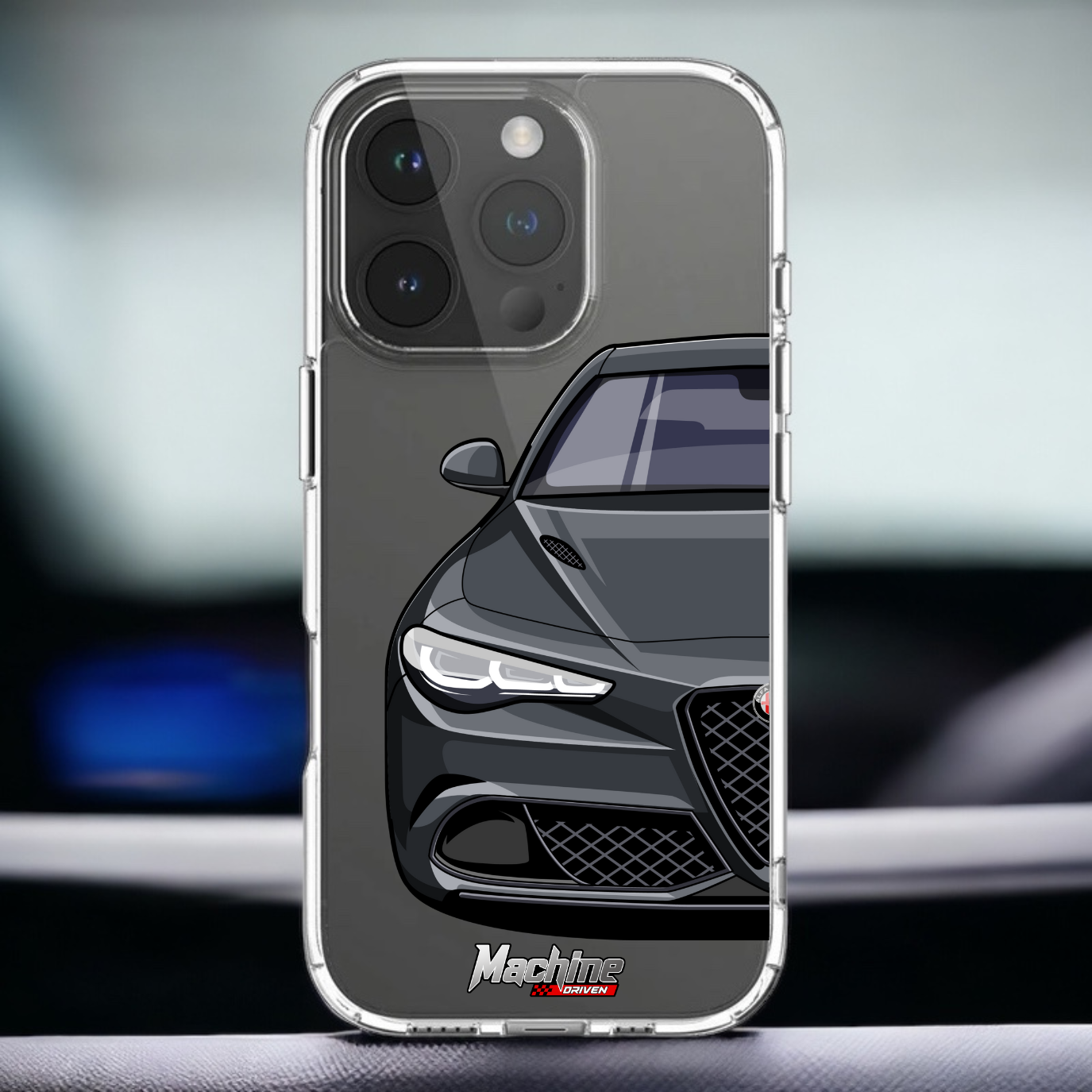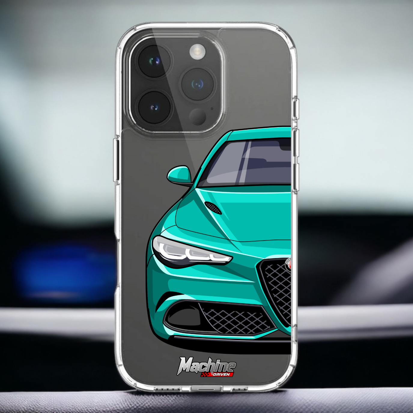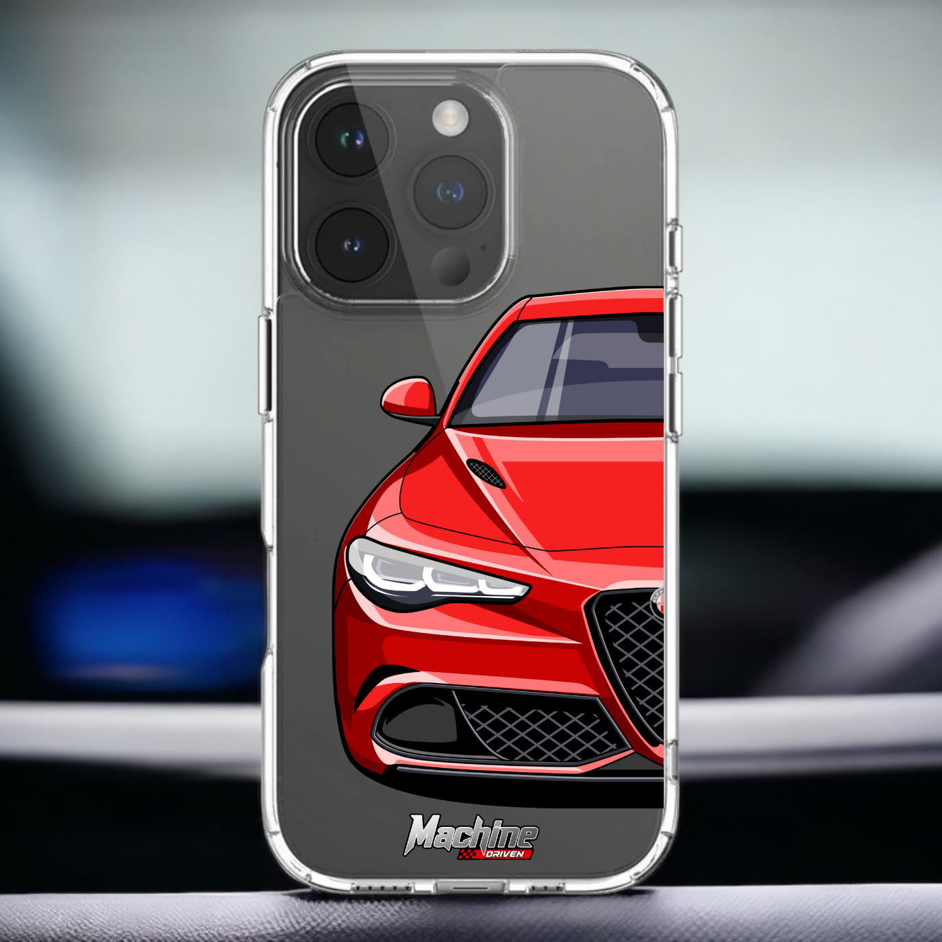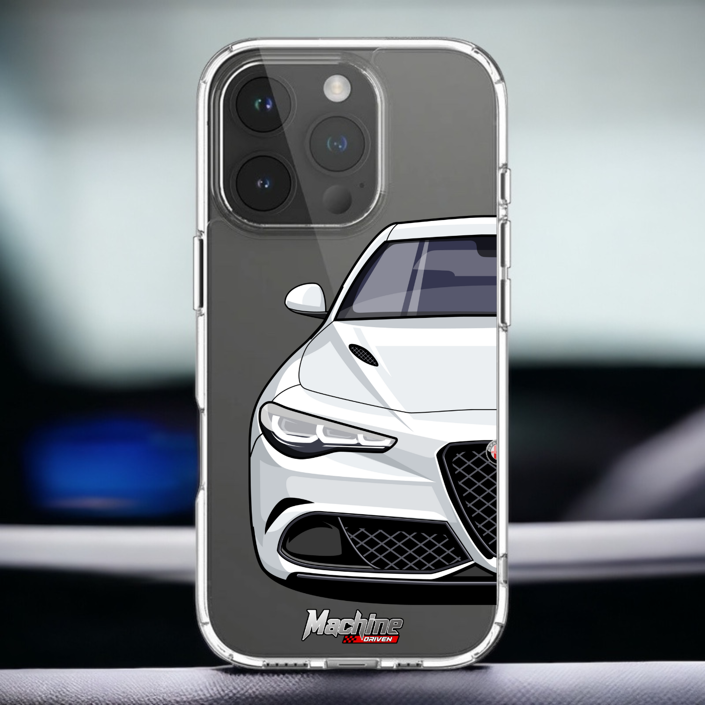 Our phone cases are transparent to show off the original colour of your phone, overlayed with ultra realistic half-image of your car and Machine Driven Logo.