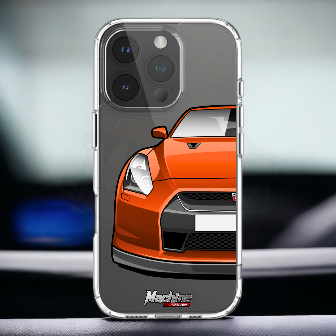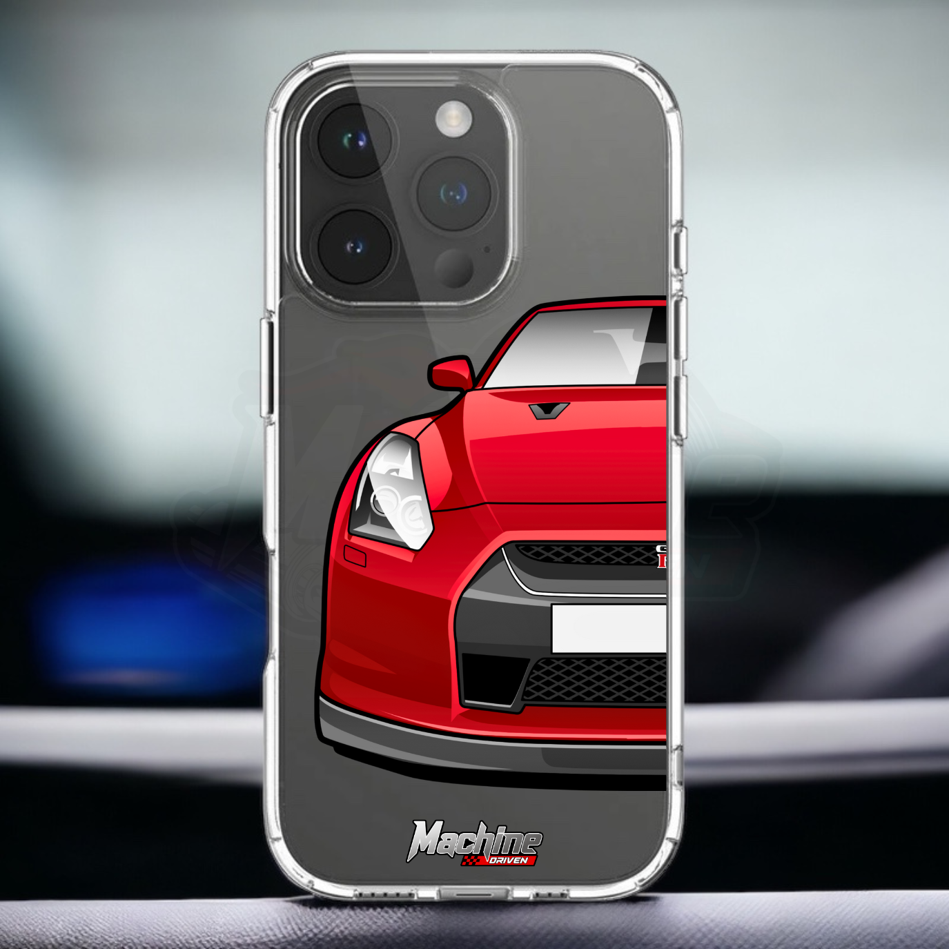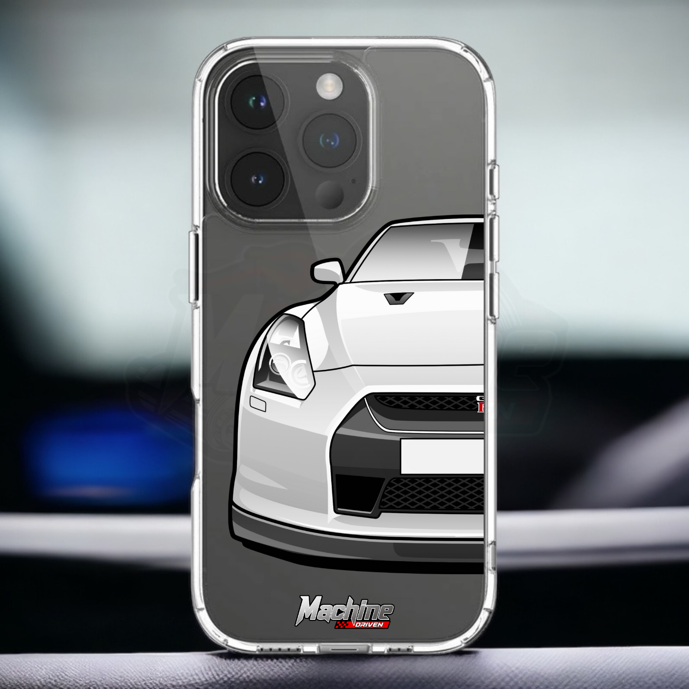 Our phone cases are transparent to show off the original colour of your phone, overlayed with ultra realistic half-image of your car and Machine Driven Logo.