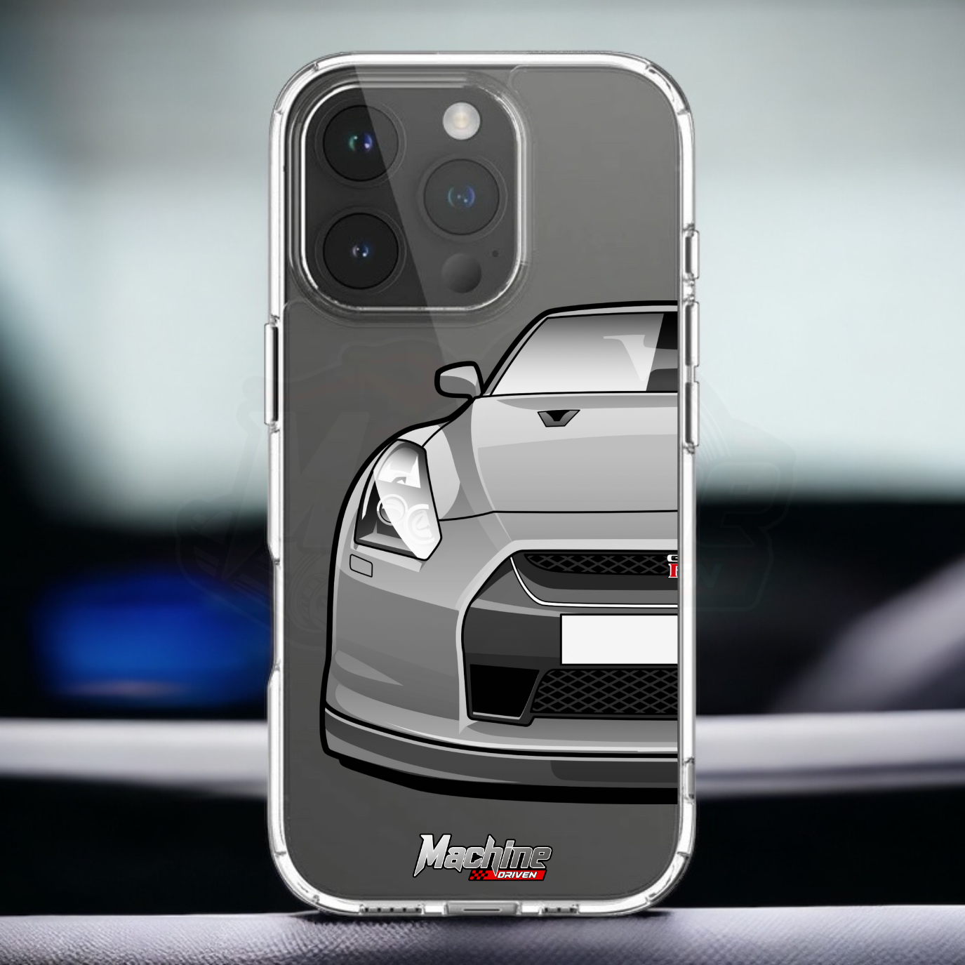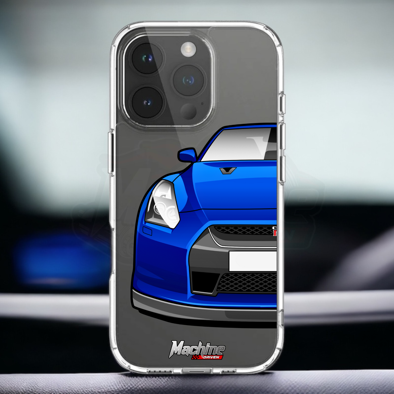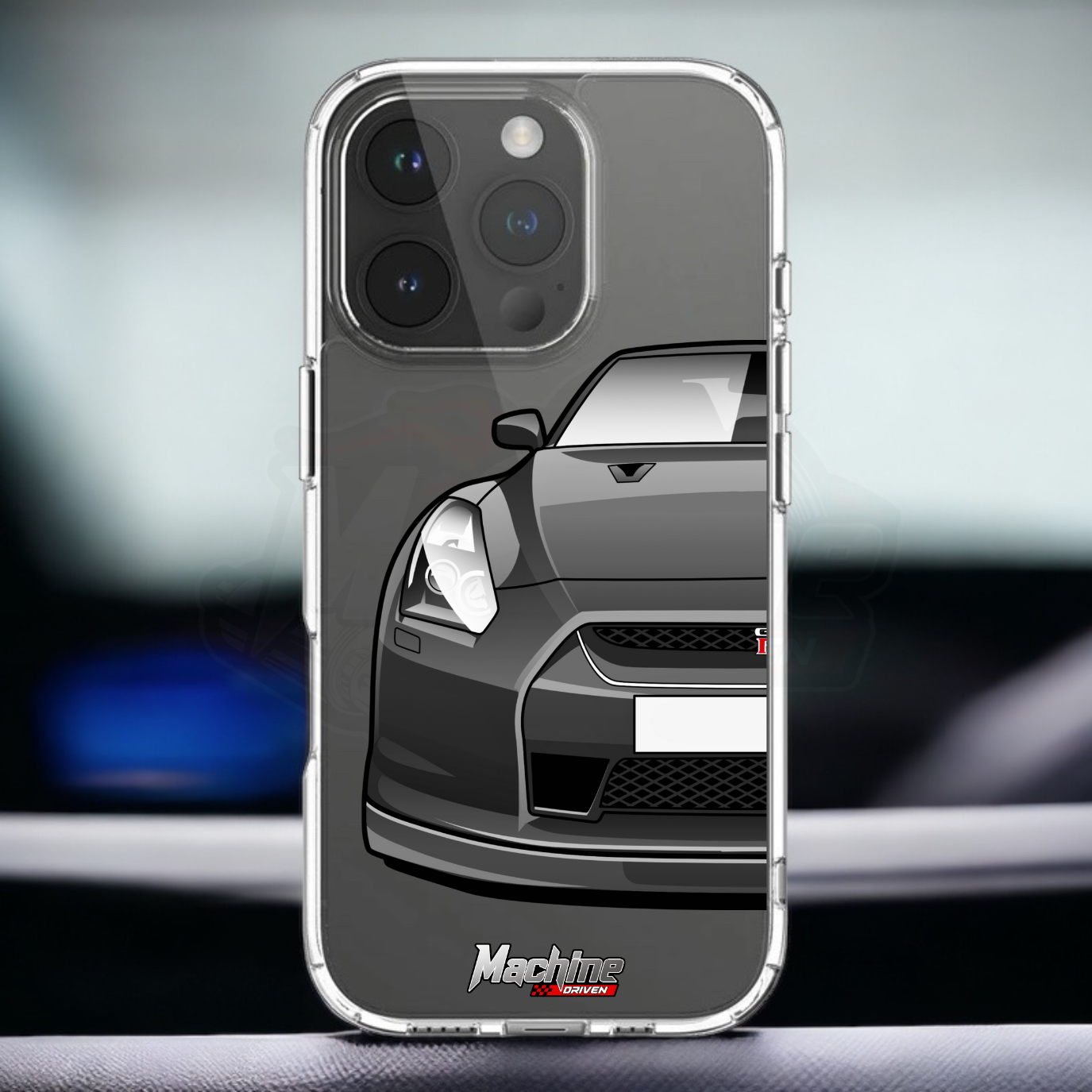 Our phone cases are transparent to show off the original colour of your phone, overlayed with ultra realistic half-image of your car and Machine Driven Logo.