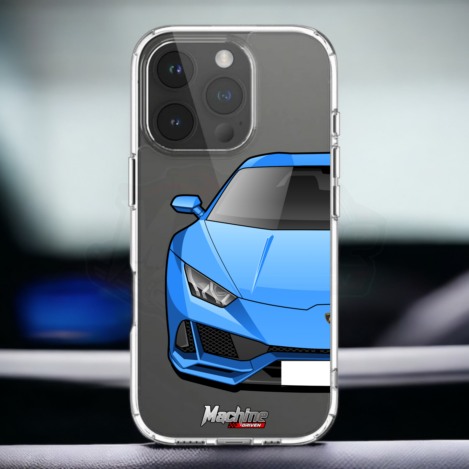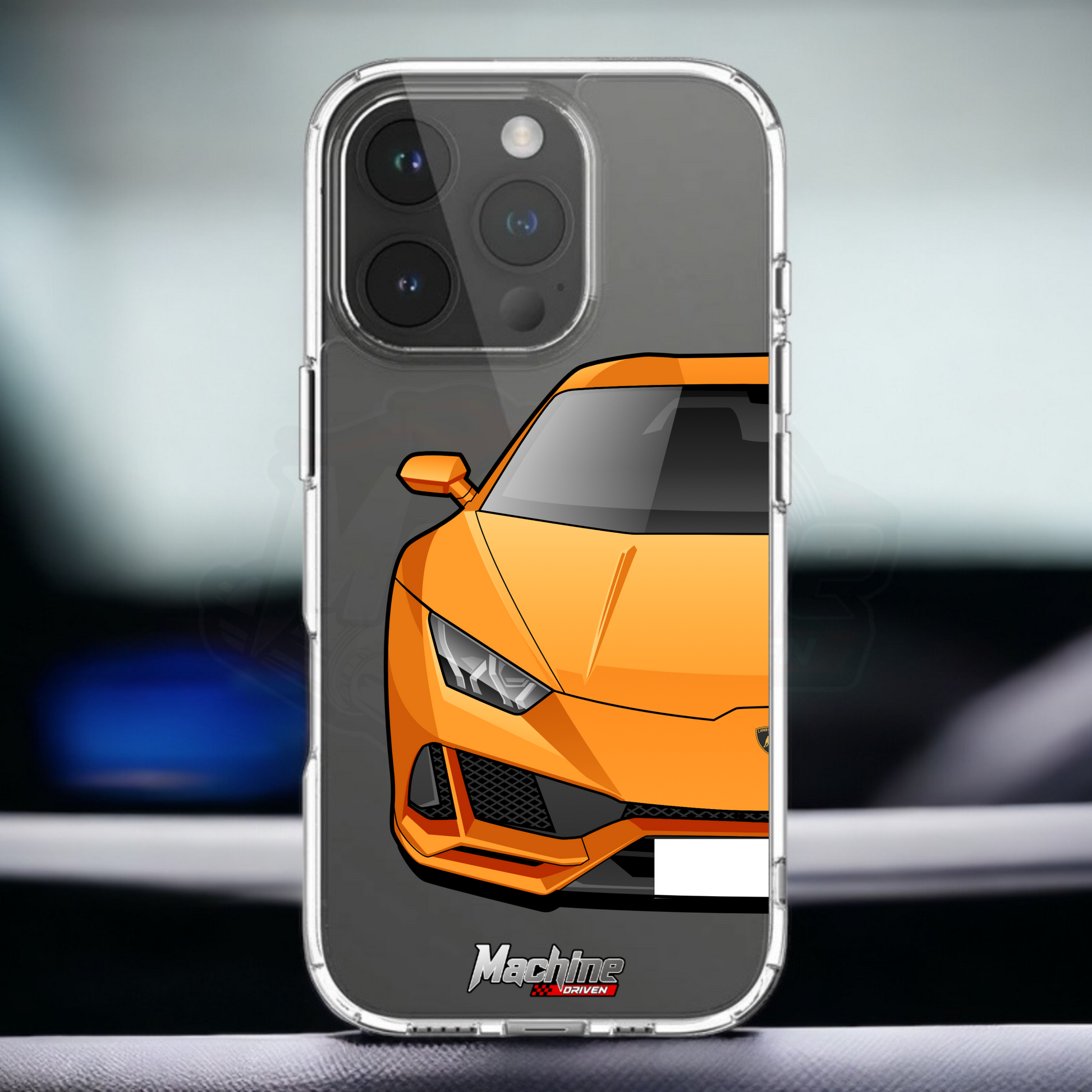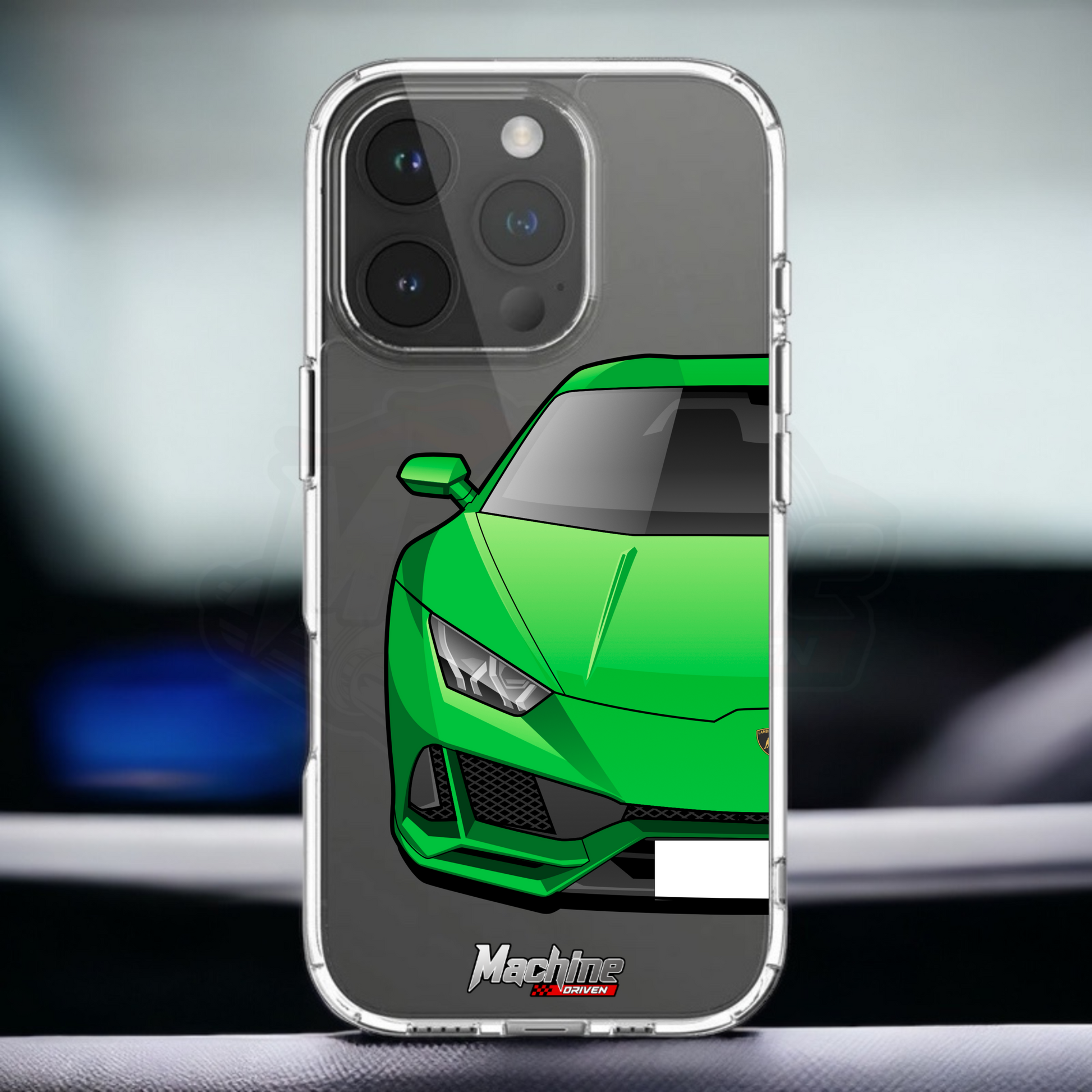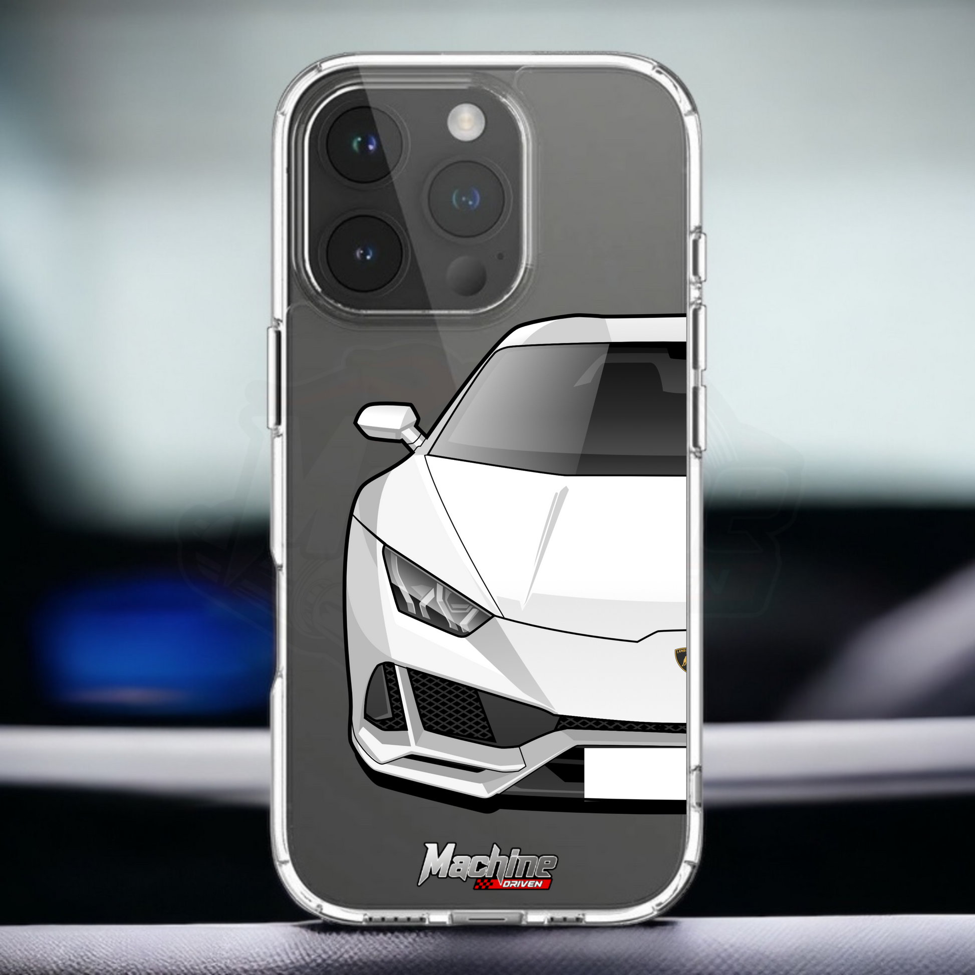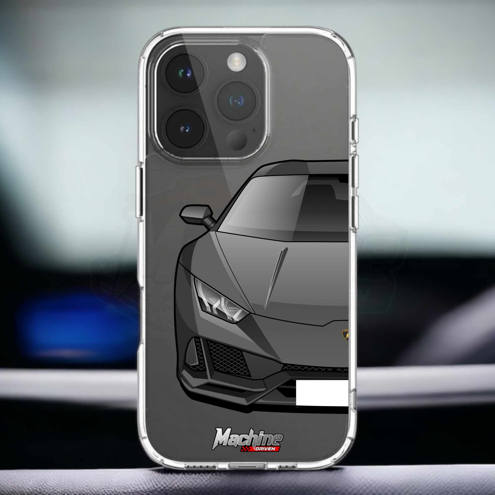 Our phone cases are transparent to show off the original colour of your phone, overlayed with ultra realistic half-image of your car and Machine Driven Logo.