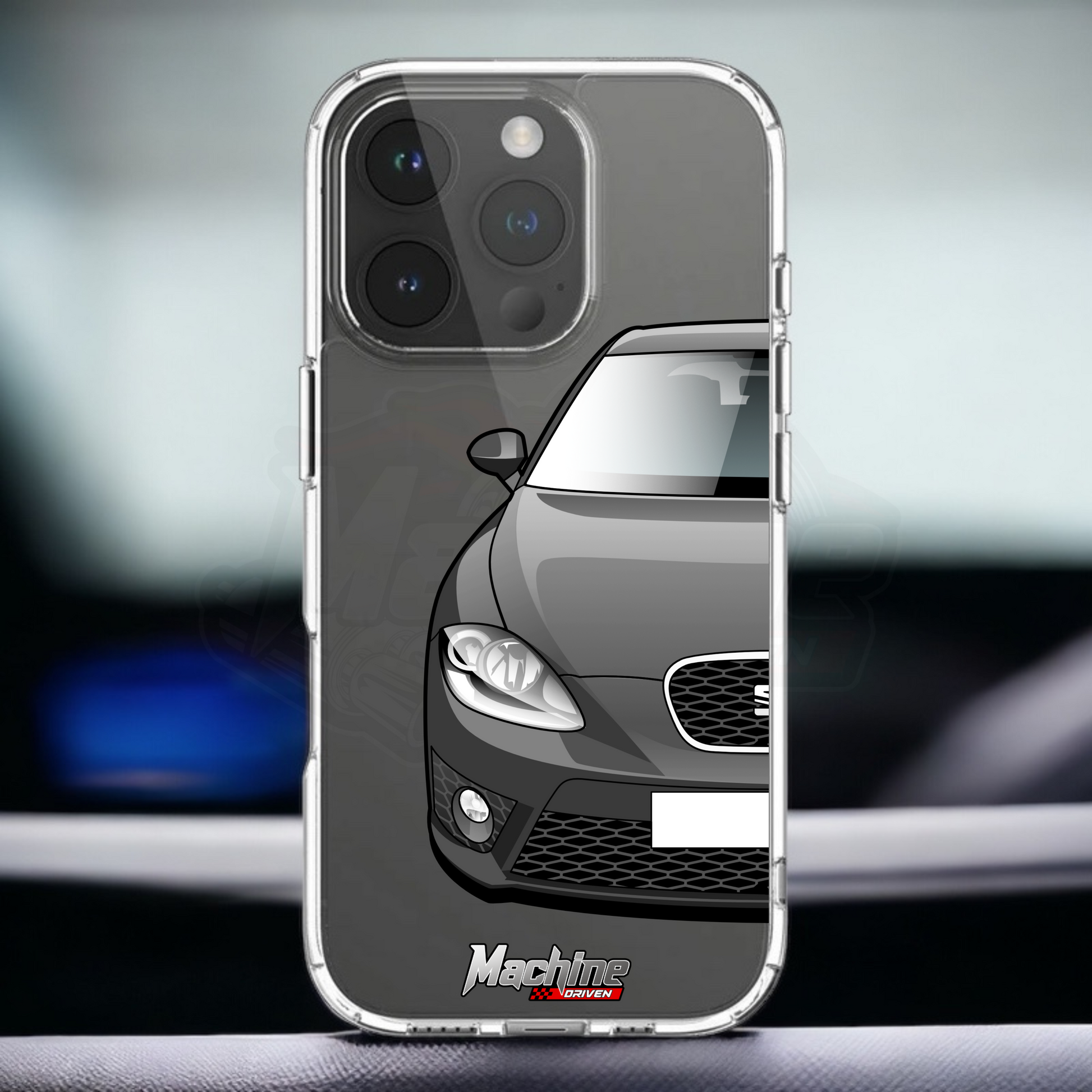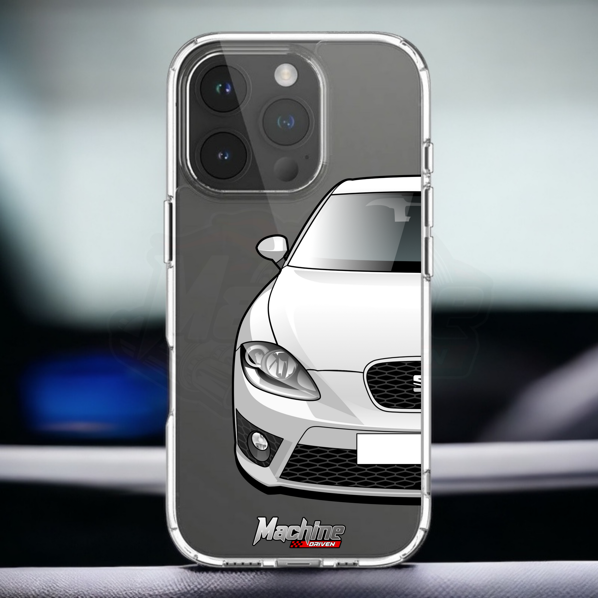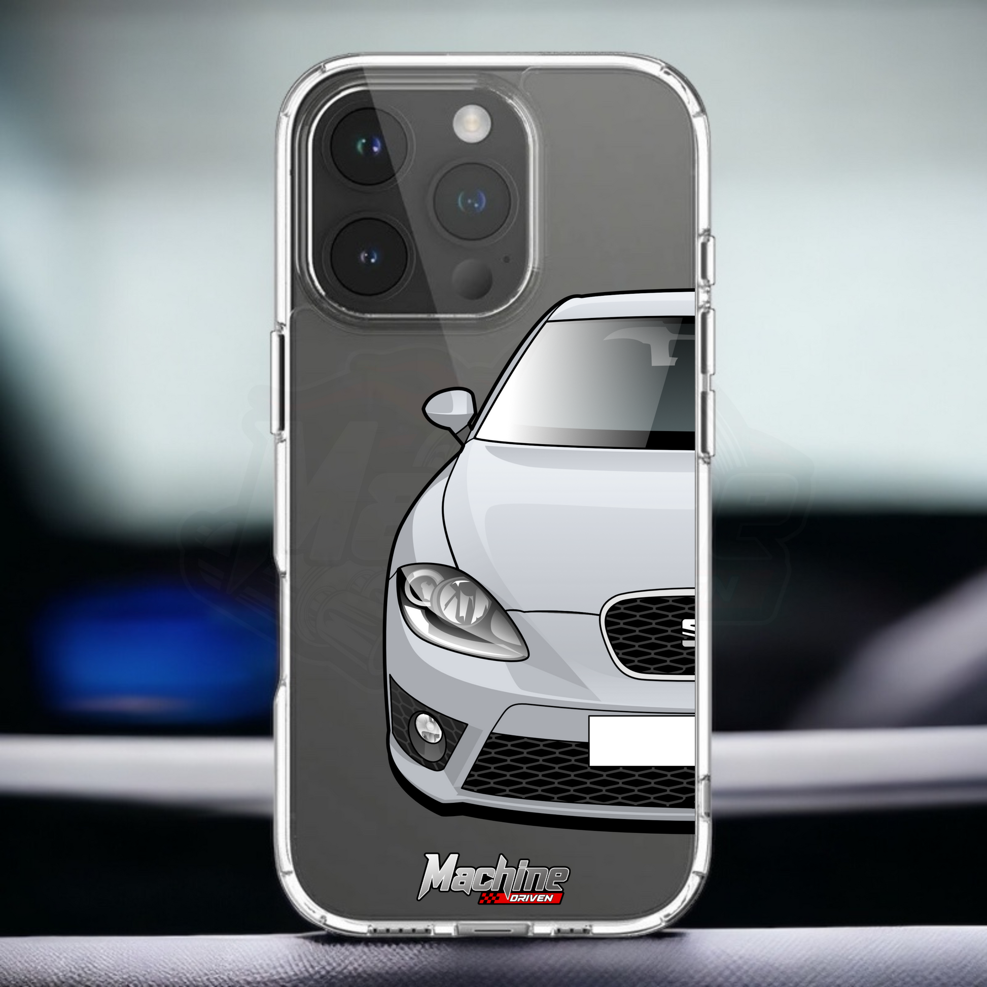 Our phone cases are transparent to show off the original colour of your phone, overlayed with ultra realistic half-image of your car and Machine Driven Logo.