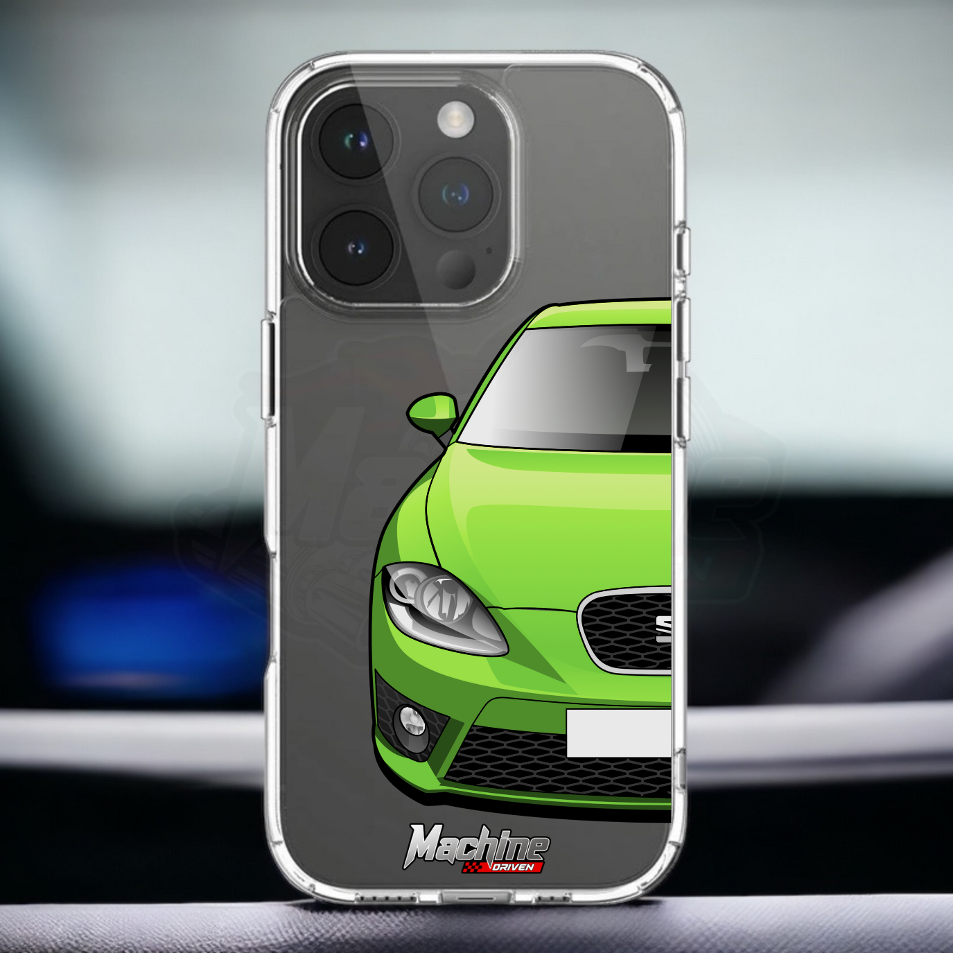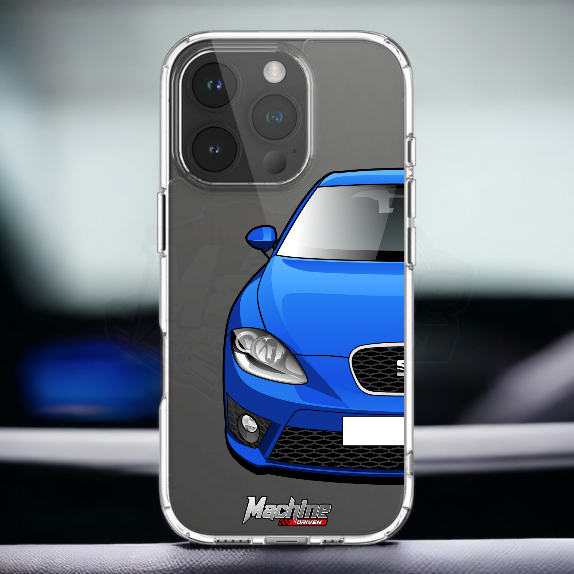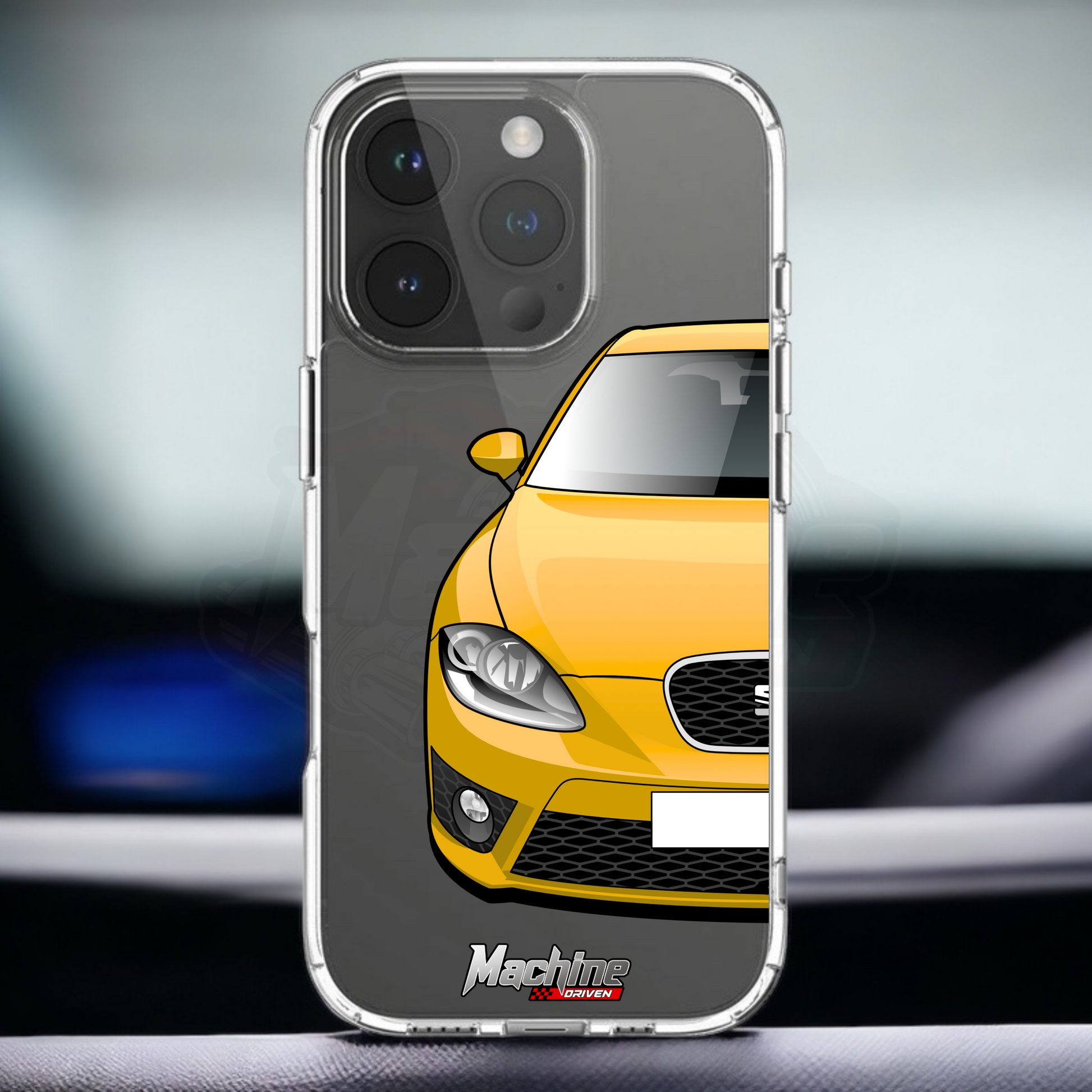 Our phone cases are transparent to show off the original colour of your phone, overlayed with ultra realistic half-image of your car and Machine Driven Logo.