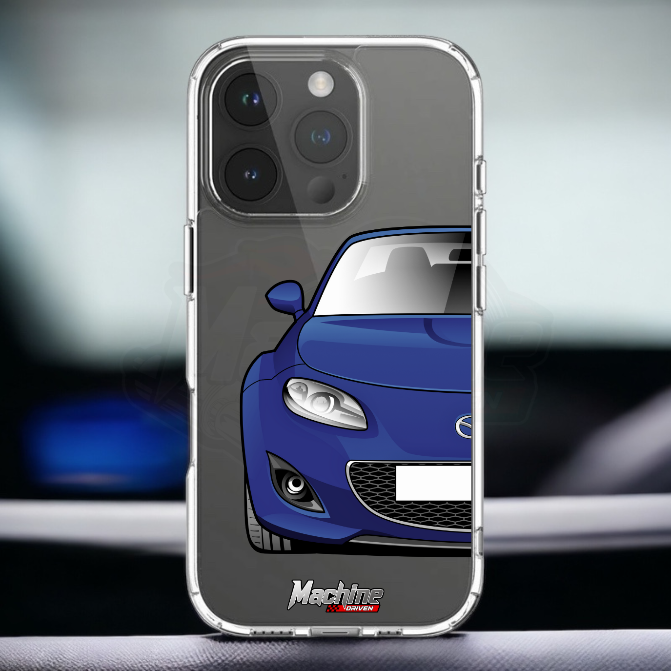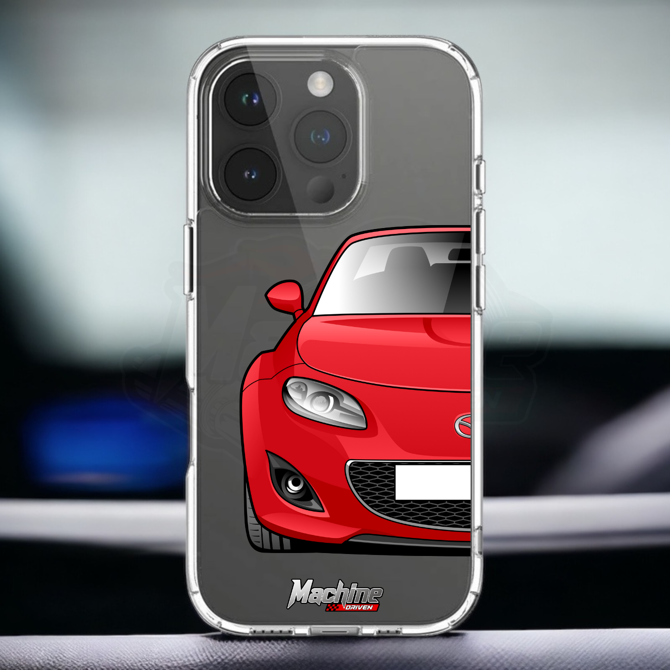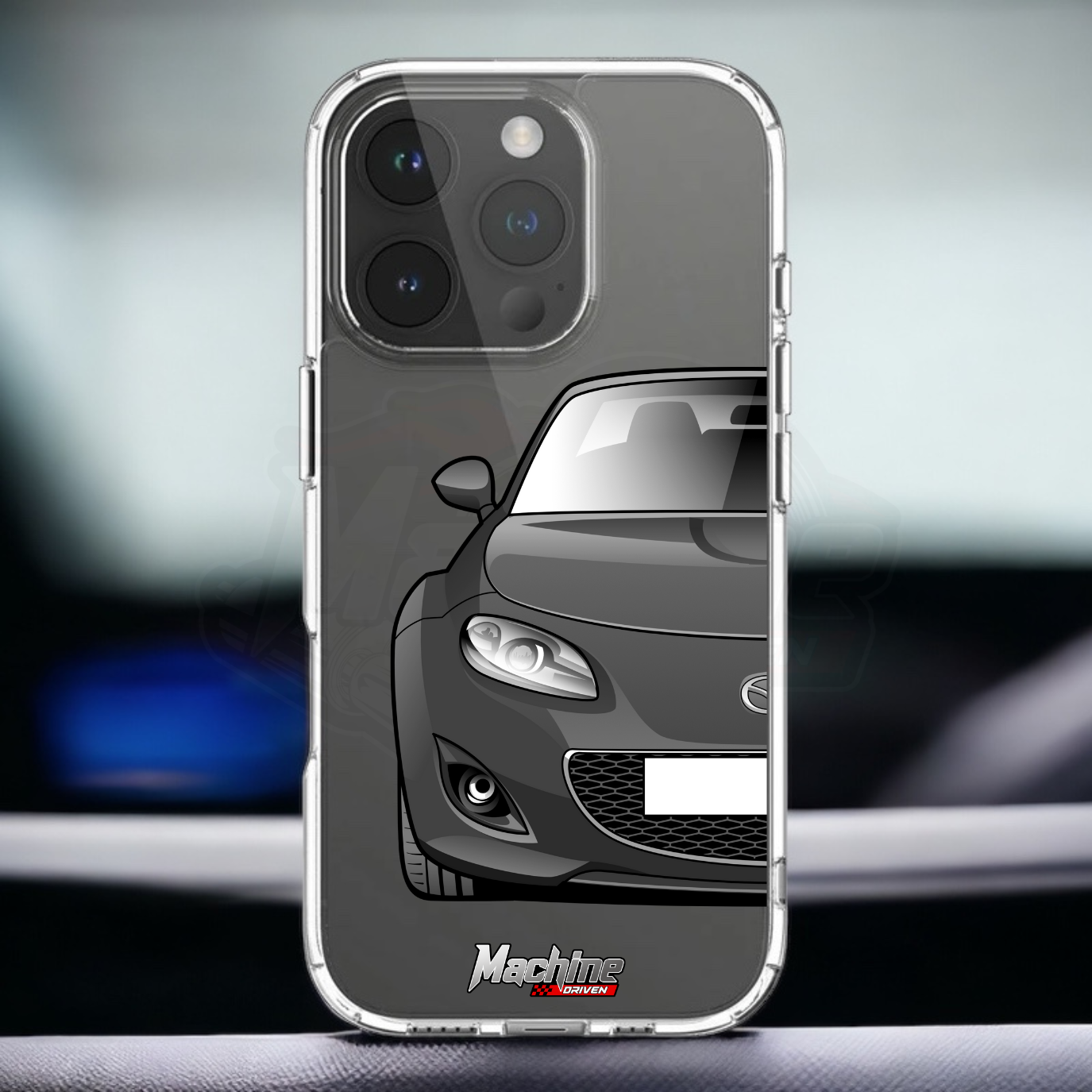 Our phone cases are transparent to show off the original colour of your phone, overlayed with ultra realistic half-image of your car and Machine Driven Logo.