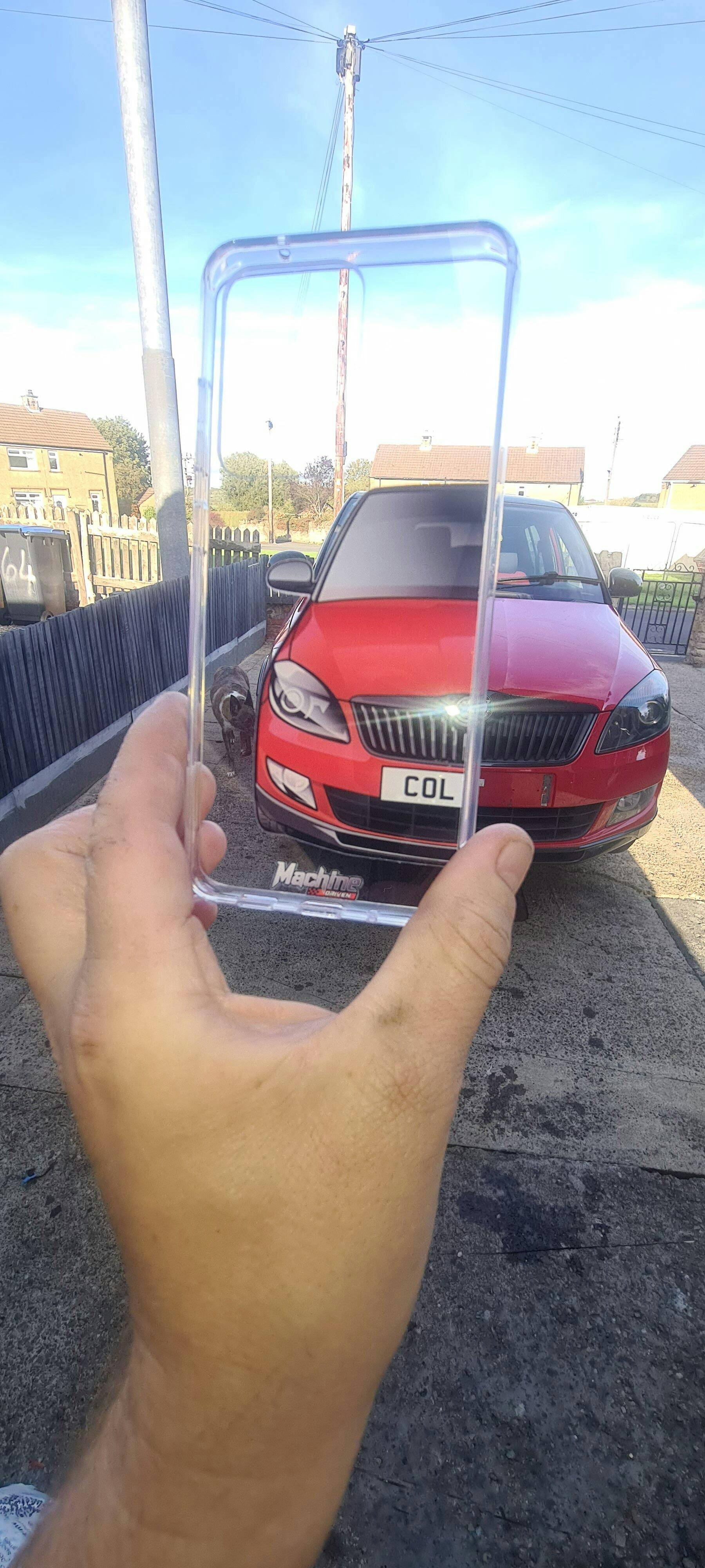 Our phone cases are transparent to show off the original colour of your phone, overlayed with ultra realistic half-image of your car and Machine Driven Logo.