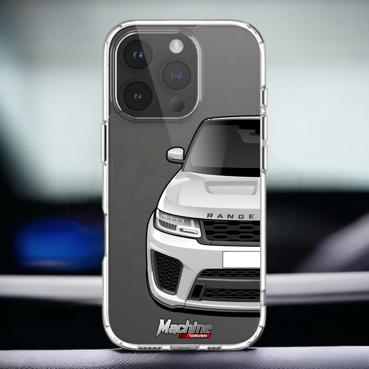 Our phone cases are transparent to show off the original colour of your phone, overlayed with ultra realistic half-image of your car and Machine Driven Logo.