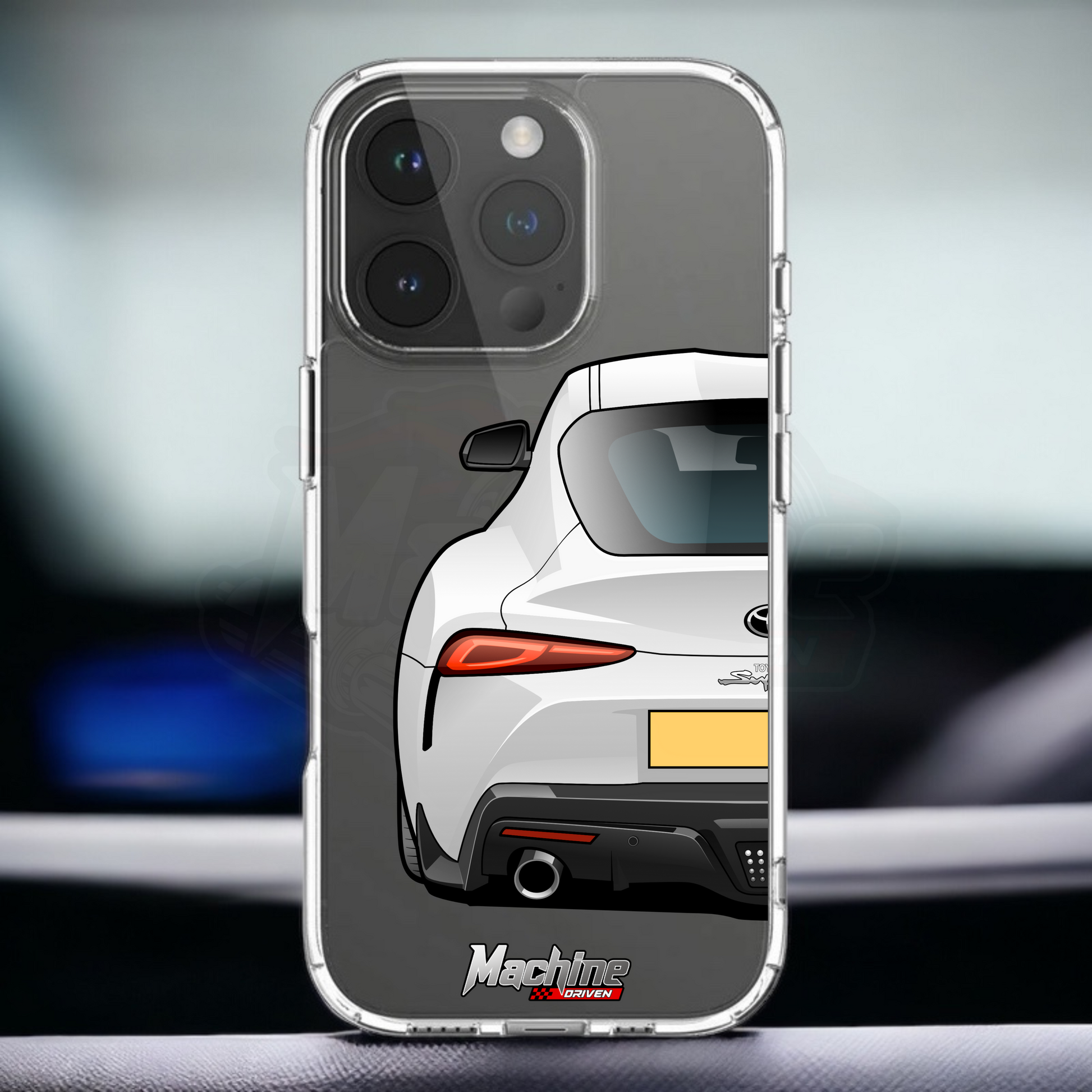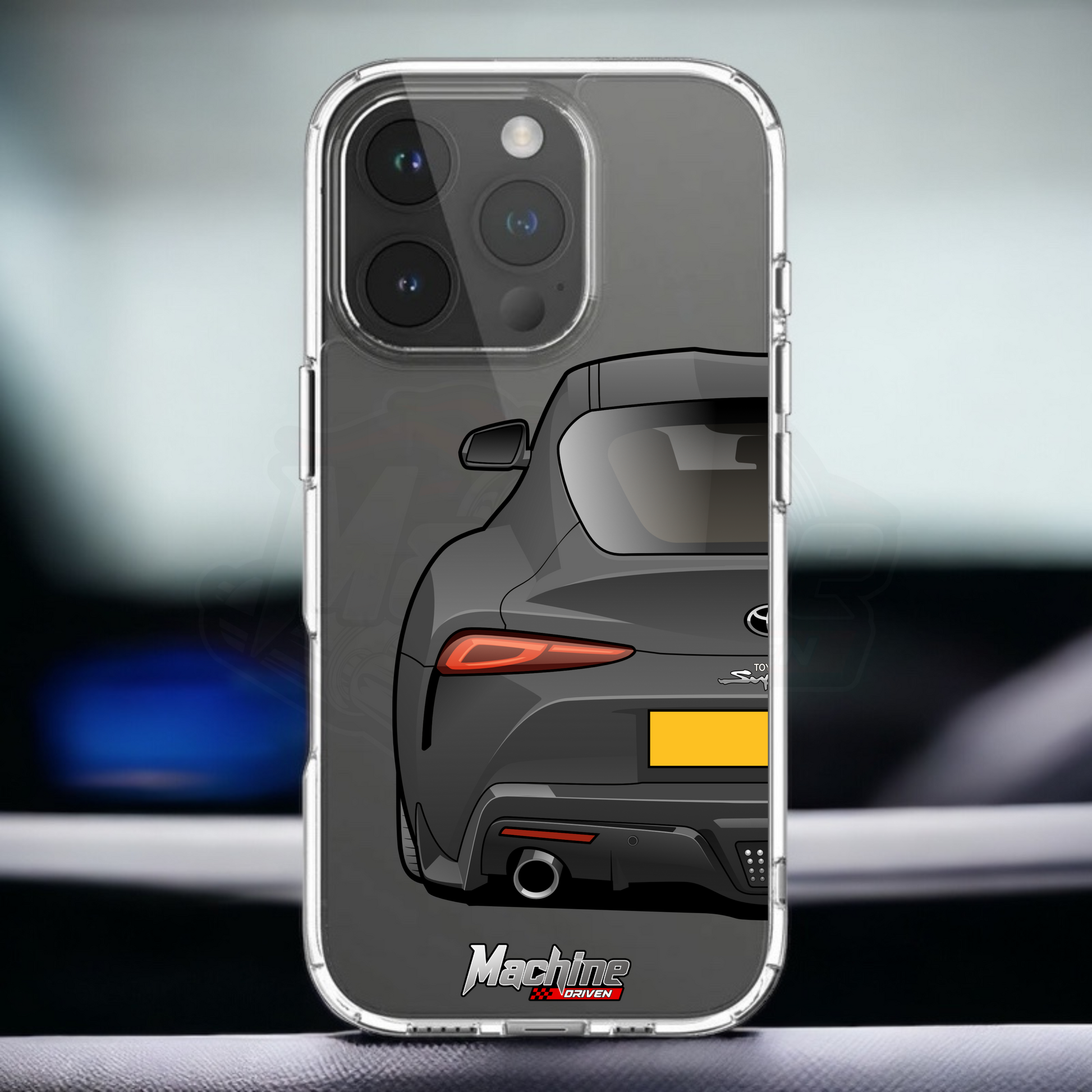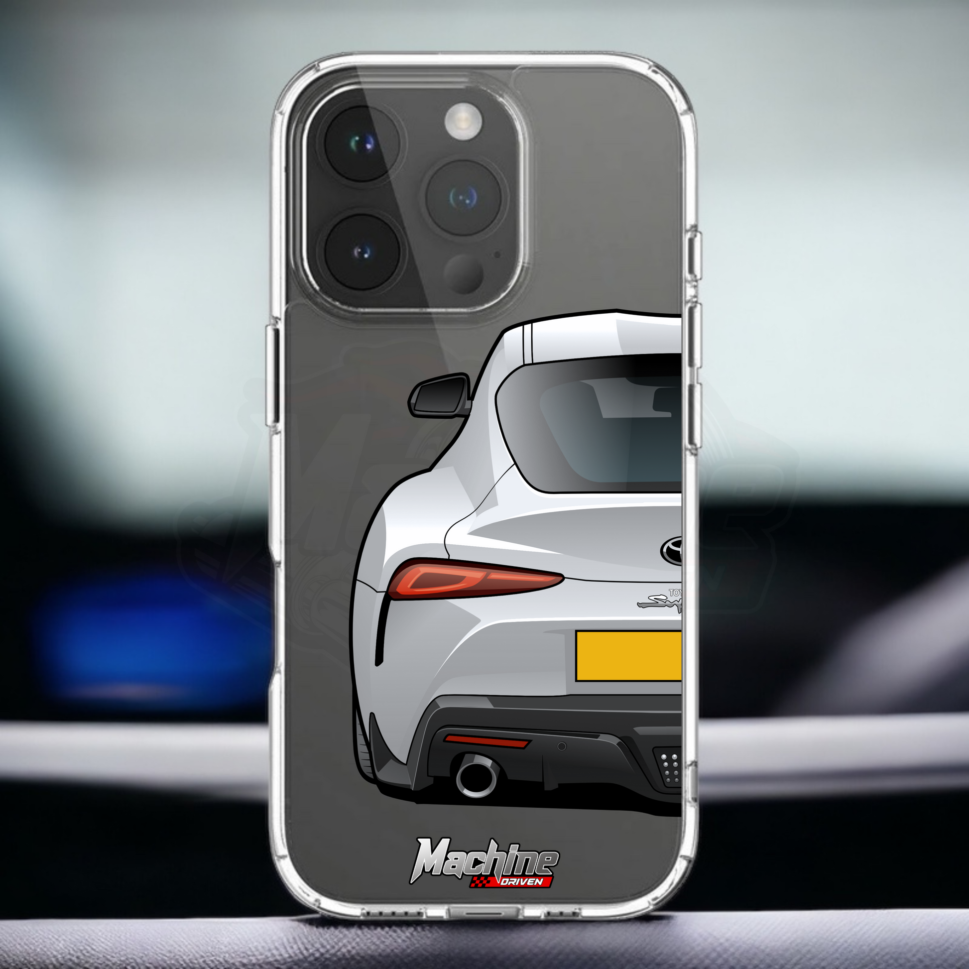 Our phone cases are transparent to show off the original colour of your phone, overlayed with ultra realistic half-image of your car and Machine Driven Logo.