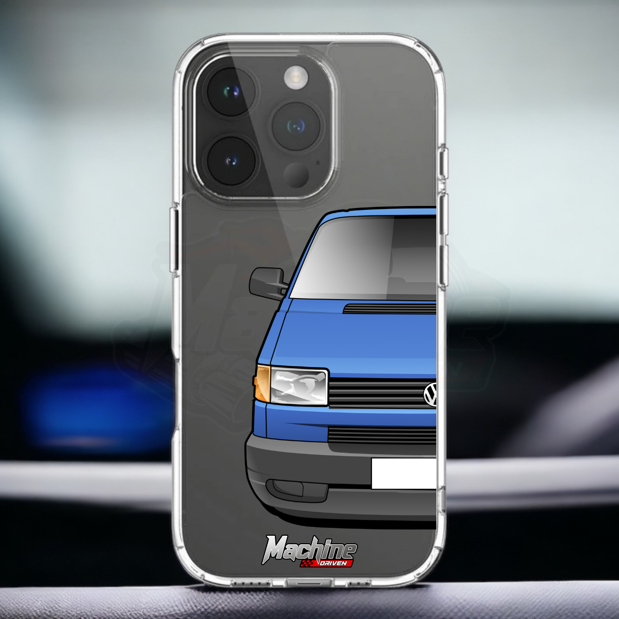 Our phone cases are transparent to show off the original colour of your phone, overlayed with ultra realistic half-image of your car and Machine Driven Logo.